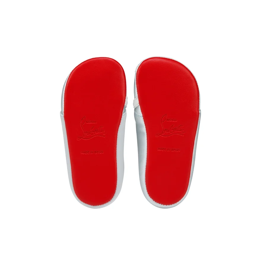 Maison Christian Louboutin’s Baby Love is a Playful and Elegant Basket, Designed for Little Feet. It’s Crafted from Pastel Blue Crepe Satin and Trimmed with a Delicate Lace That Enhances the Foot.