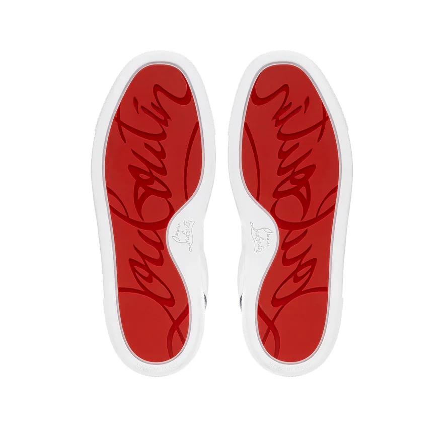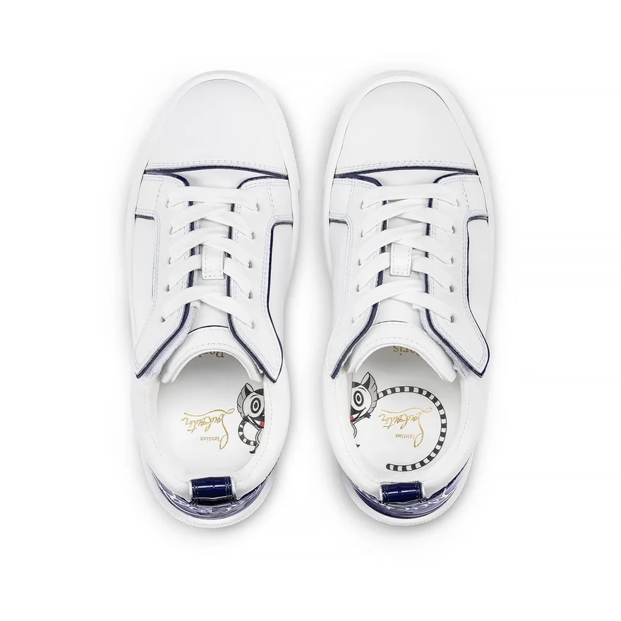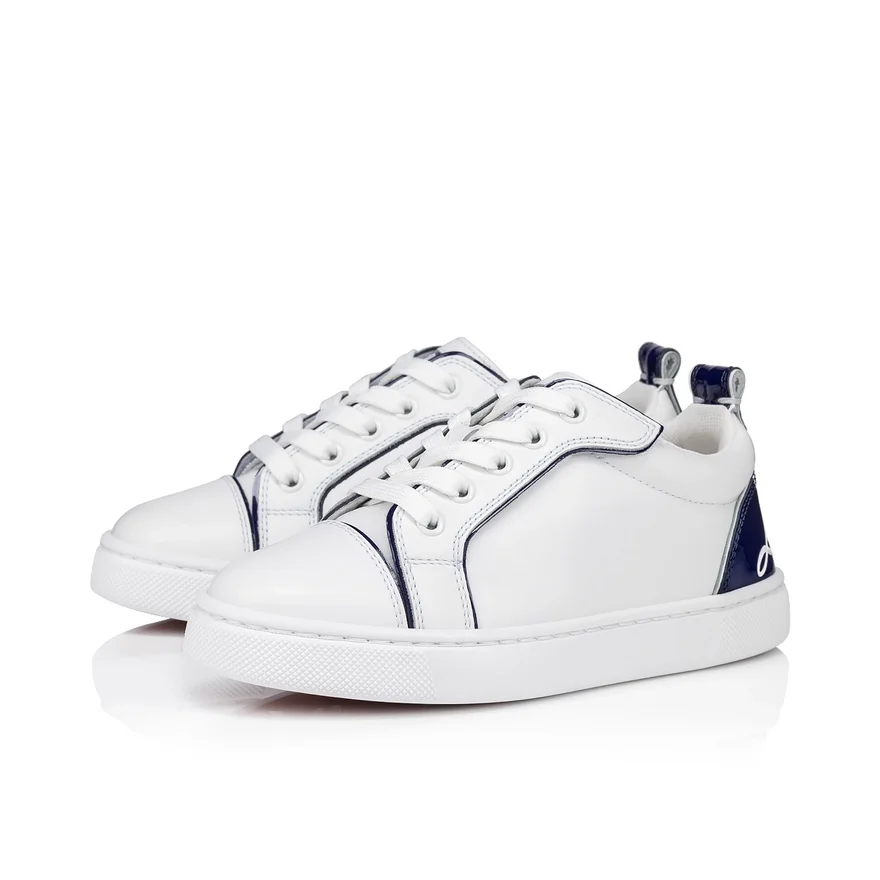 The Eye-Catching, Elegant Low-Top Funnyto Sneaker is Crafted from White Calf Leather. This Maison Christian Louboutin Sneaker Has a Navy-Blue Patent Calf Leather Heel Counter That Sports a Signature Logo. It Has a Lace-Up That Only Needs Doing up the First Time It’s Worn as It Can Then Be Fastened by a Velcro Strap.