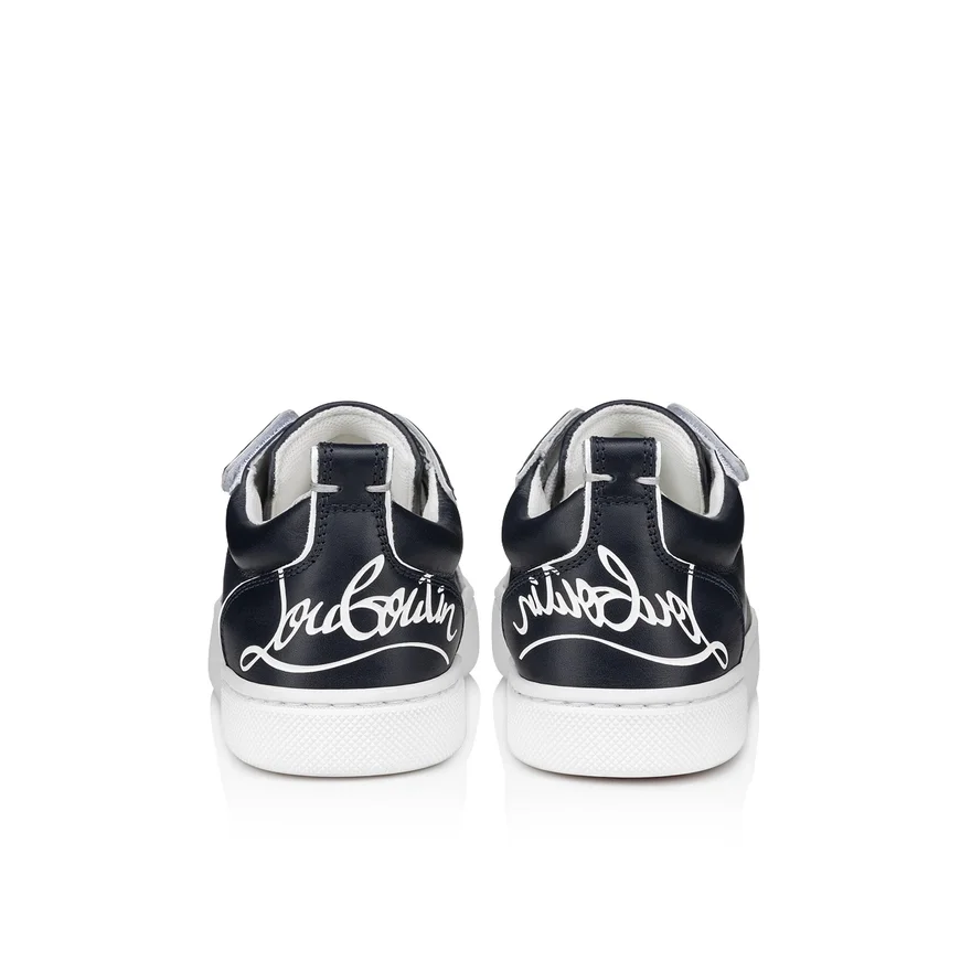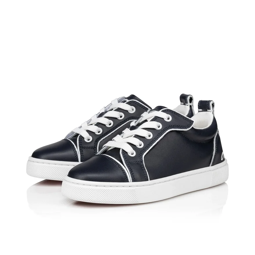The Eye-Catching, Elegant Low-Top Funnyto Sneaker is Crafted from Navy Blue Calf Leather. This Maison Christian Louboutin Sneaker Has a Tonal Patent Calf Leather Heel Counter That Sports a Signature Logo. It Has a Lace-Up That Only Needs Doing up the First Time It is Worn as It Can Then Be Fastened by a Velcro Strap.