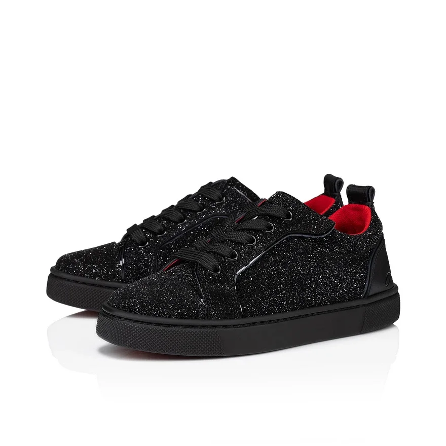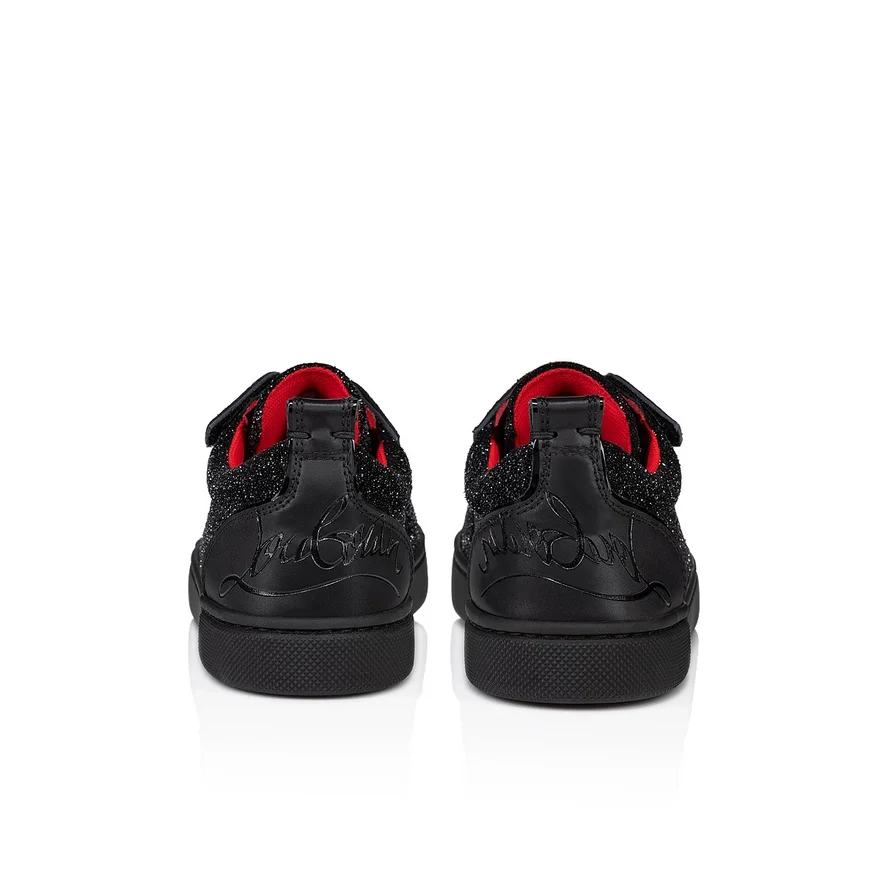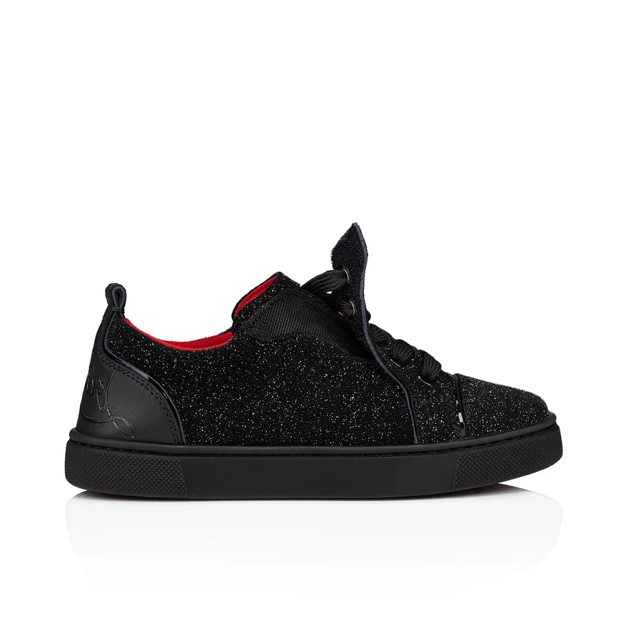 The Funnyto Low-Top Sneaker Has Sleek Lines. This Sporty Maison Christian Louboutin Style is Crafted in Laminated Suede Calf Leather and Comete Black Veau Velours, Evoking a Starry Sky.- Signature Loubi Red Anti-Slip Sole.- Hook and Loop and Lace-Up Fastening on the Upper – Laces Can Be Tied Just the First Time for Great Fit- Louboutin Signature at the Back- Wide Heel Tab- a Hook and Loop Fastening Makes the Sneaker Easy to Pull on- a Printed Lemur on the Insole to Help Kids Tell Left from Right- Designed for Everyday Use- for Kids Get One Exclusive Magnet with Every Kids and Baby Order.