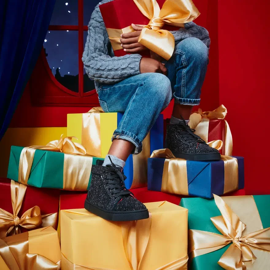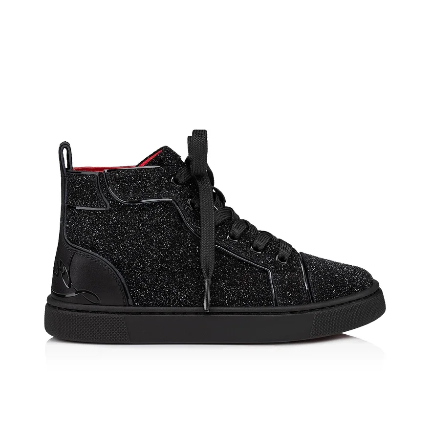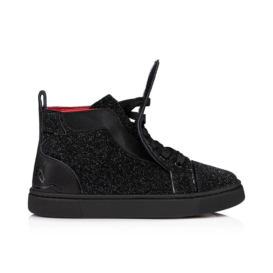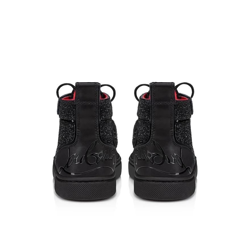 The Funnytopi High-Top Sneaker Has Sleek Lines. This Sporty Style is Crafted in Laminated Suede Calf Leather and Comete Black Veau Velours, Evoking a Starry Sky.- Signature Maison Christian Louboutin Red Anti-Slip Sole.- Hook and Loop and Lace-Up Fastening on the Upper – Laces Can Be Tied Just the First Time for Great Fit- Louboutin Signature at the Back- Wide Heel Tab- a Hook and Loop Fastening Makes the Sneaker Easy to Pull on- a Printed Lemur on the Insole to Help Kids Tell Left from Right- Designed for Everyday Use- Maxi Me Adult Version Availableget One Exclusive Magnet with Every Kids and Baby Order.