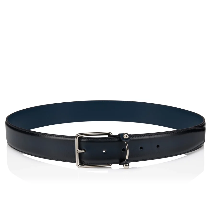 The Chambeliss Belt is Defined by Its Buckle That Features a Silver Metal Collar Pin. This Elegant Maison Christian Louboutin Accessory is Entirely Crafted from Last Night Blue Calf Leather with a Hand-Applied Patinated Effect.