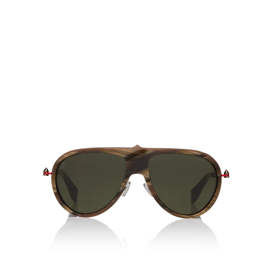 Greggo Lb0004 is One of the Most Iconic Styles of This Sunglasses Collection. It Features a Pilot Style with Metal Detail on the Frontal That Enrich the Acetate. A Red Touch is Given by Enamel on Temple Side Profile. Crafted Metal with Palmette Pattern Embellished the Temples Structure. This Model is Made in a Brown Horn Color and Vintage Green Lenses. High-Performance Zeiss Lenses Offering Exceptional Quality Comfort and Durability for Christian Louboutin Collection.