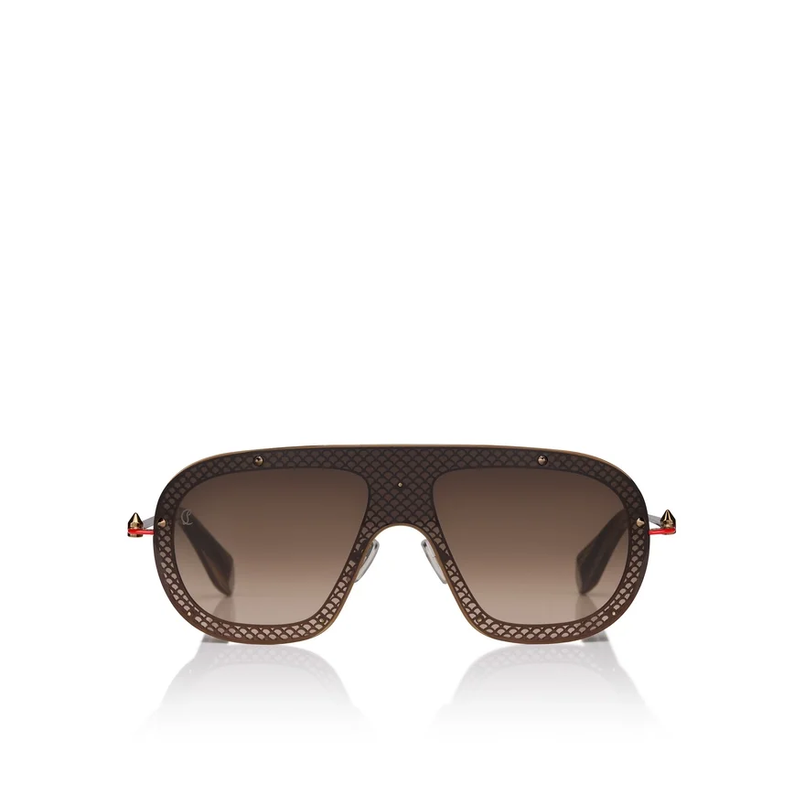 The Roller Lb0012 Sunglasses Feature a Futuristic Design That Combines Rock and Avant-Garde Aesthetics.This Mask-Style Frame Features Large, Mirrored Lenses for a Bold, Distinctive Look. A Row of Small Metal Studs Along the Upper Edge Adds a Daring Touch of Edgy Style. This Model is Made in a Dark Bronze Color with Brown Lenses. High-Performance Zeiss Lenses Offering Exceptional Quality Comfort and Durability for Christian Louboutin Collection.Belongingto the Men’s Collection, This Model Suits Both Men and Women.
