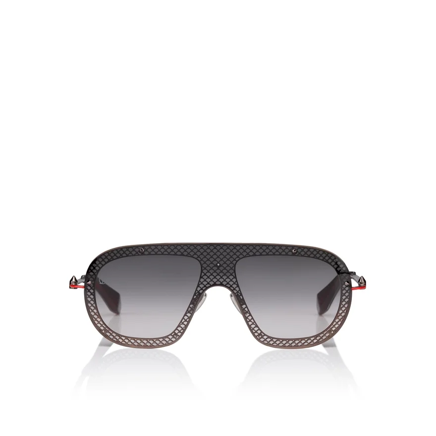 The Roller Lb0012 Sunglasses Feature a Futuristic Design That Combines Rock and Avant-Garde Aesthetics. This Mask-Style Frame Features Large, Mirrored Lenses for a Bold, Distinctive Look. A Row of Small Metal Studs Along the Upper Edge Adds a Daring Touch of Edgy Style. This Model is Made in a Gunmetal Grey Color with Gradient Smoke Lenses. High-Performance Zeiss Lenses Offering Exceptional Quality Comfort and Durability for Christian Louboutin Collection.Belongingto the Men’s Collection, This Model Suits Both Men and Women.