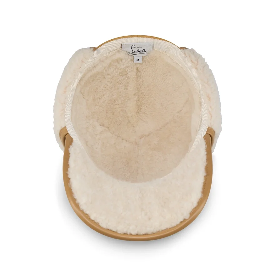 The Loubiwood Cap from Maison Christian Louboutin Revisits the Principles of the Chapka. This Sporty Model is Crafted from Lionne Beige Lamb Nappa Leather and is Lined with Shearling for Warmth. The Flaps Can Be Tied at the Top of the Cap.