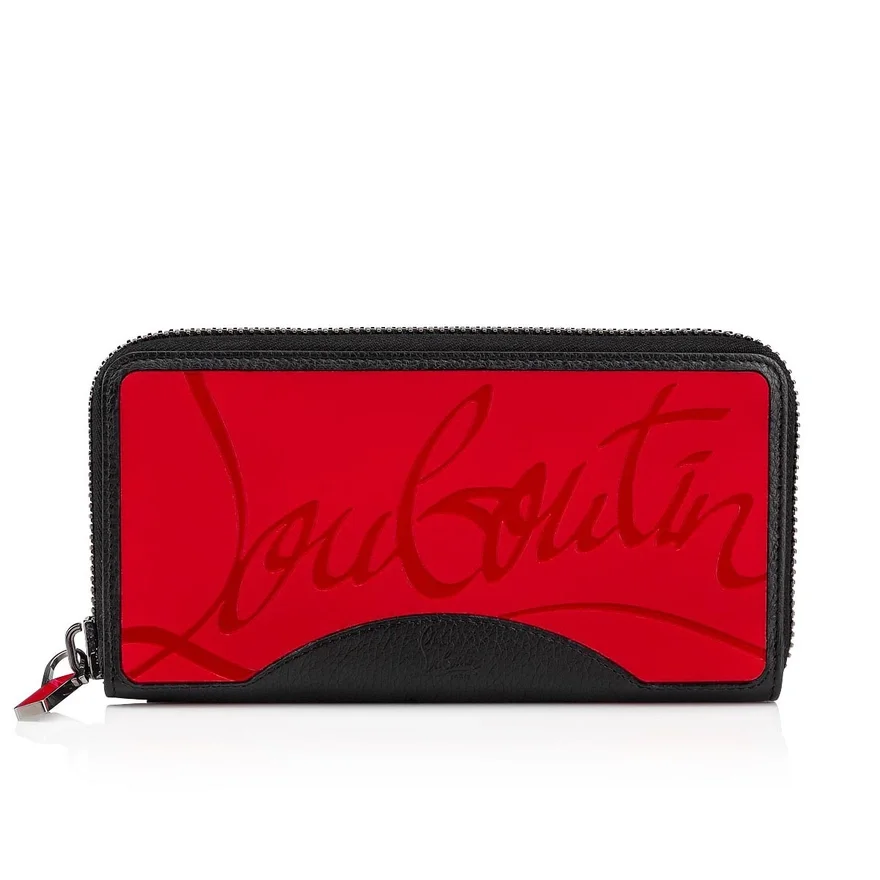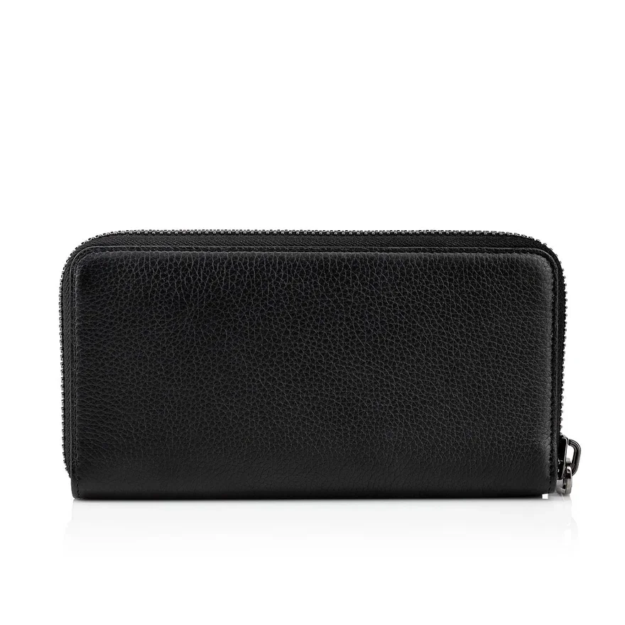 The Elegant Panettone Wallet Comes with a Zip Closure. This Sophisticated Icelandic Black Grained Calfskin Model Offers a Large Storage Capacity. It Has a Signature Red Front Evocative of the Soles of Maison Christian Louboutin Sneakers for a Daring Style.