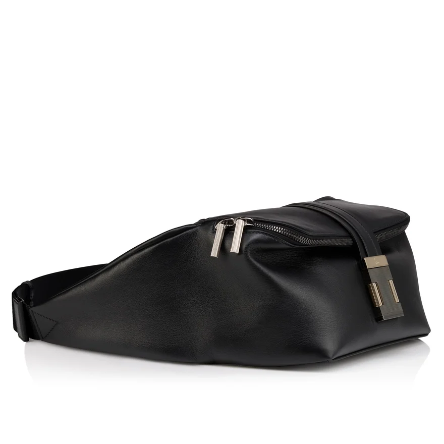 The Maison Christian Louboutin Nox Bumbag S is an Eye-Catching Belt Bag Characterized by Its Crafted Clasp with a Guillocha Finish. An Adjustable Webbing Strap Allows It to Be Worn Across the Chest or over the Back. This Stylish Little Bag is Designed in a Compact Format with a Distinctive and Urban Look. It is Made from Supple and Smooth Black Calf Leather with a Slightly Shiny Finish.