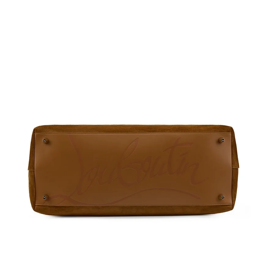 The Urban Funky Weekender is Adorned with Signature Maison Christian Louboutin Gold Metallic Spikes. This Lightweight and Supple Bag Features Signature Maison Christian Louboutin Iconic Spikes on Top and a Lasered Louboutin Signature on the Bottom Base. With Its Sporty Lines, It is Crafted from Rhea Brown Nubuck Leather.