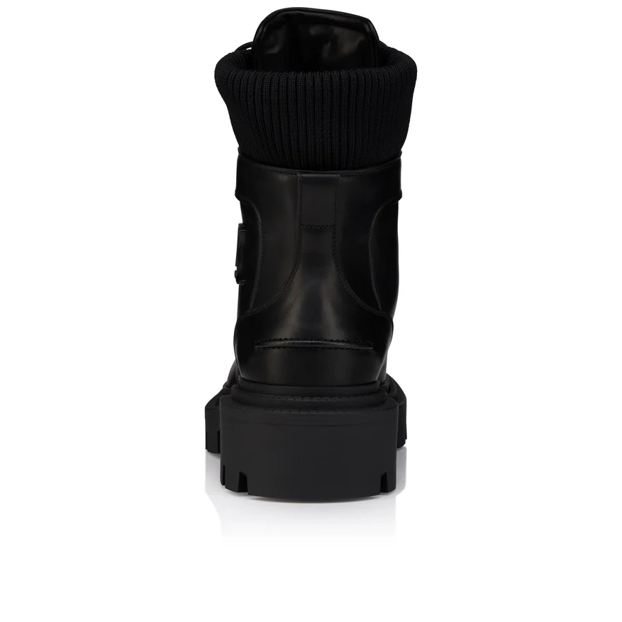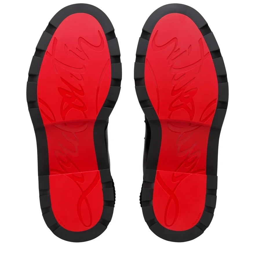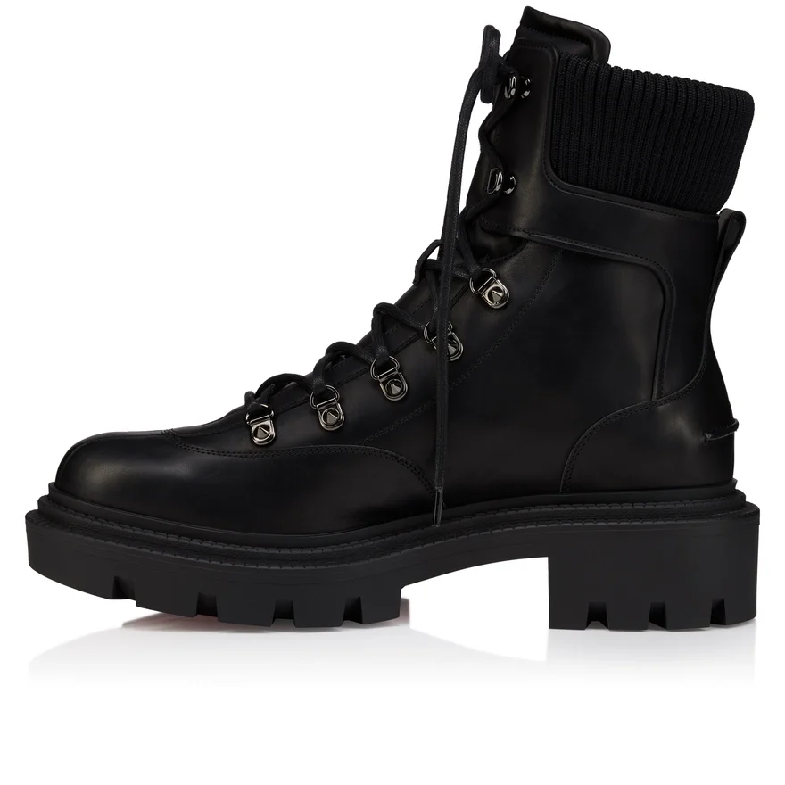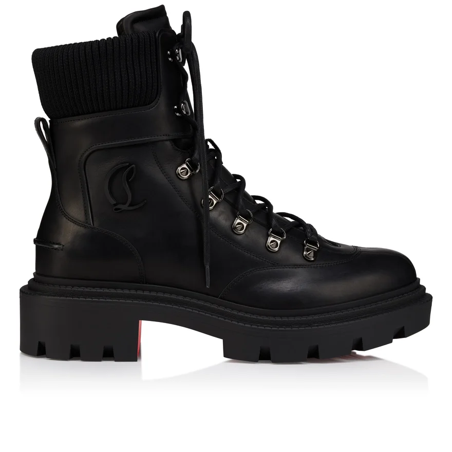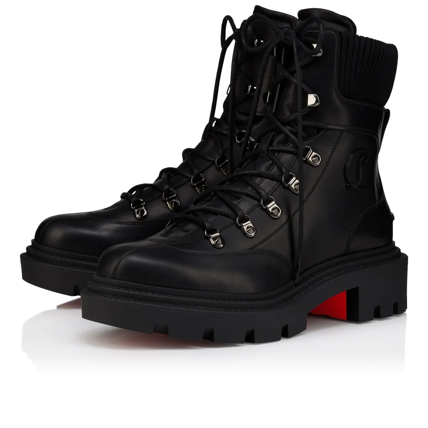 Revisiting the Principles of Mountain Footwear, the Armandine College Lace-Up is an Ankle Boot with a Sporty Look for Men. Made Entirely from Black Waxed Calf Leather, They Also Feature a Tonal Mesh Band Around the Ankle and a Notched Sole. This Shoe from Maison Christian Louboutin is Characterized by the Cl Initials on the Side and a Tone-On-Tone Leather Strap at the Back.
