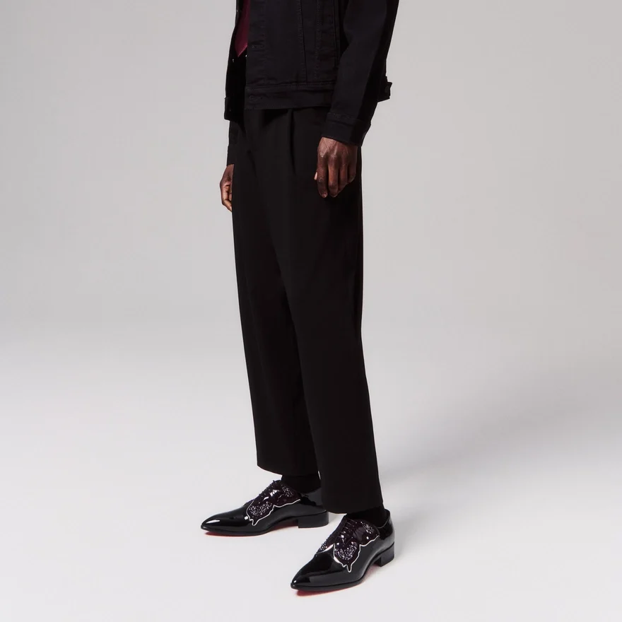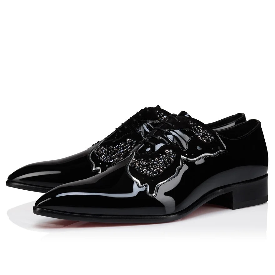 With Its Tapered Silhouette and Pointed Toe, the Farfarock Shoe is Both Elegant and Innovative. Set on an Understated Heel, It is Made from Black Patent Calf Leather. The Veau Velours Upper Panel Detailing Showcases Maison Christian Louboutin’s Expertise. It is Outlined in Specchio Calf Leather and Patent Calf Leather and Embellished with Hand-Assembled Rhinestones to Depict a Butterfly. This Shoe is Part of the Hollywood Capsule.
