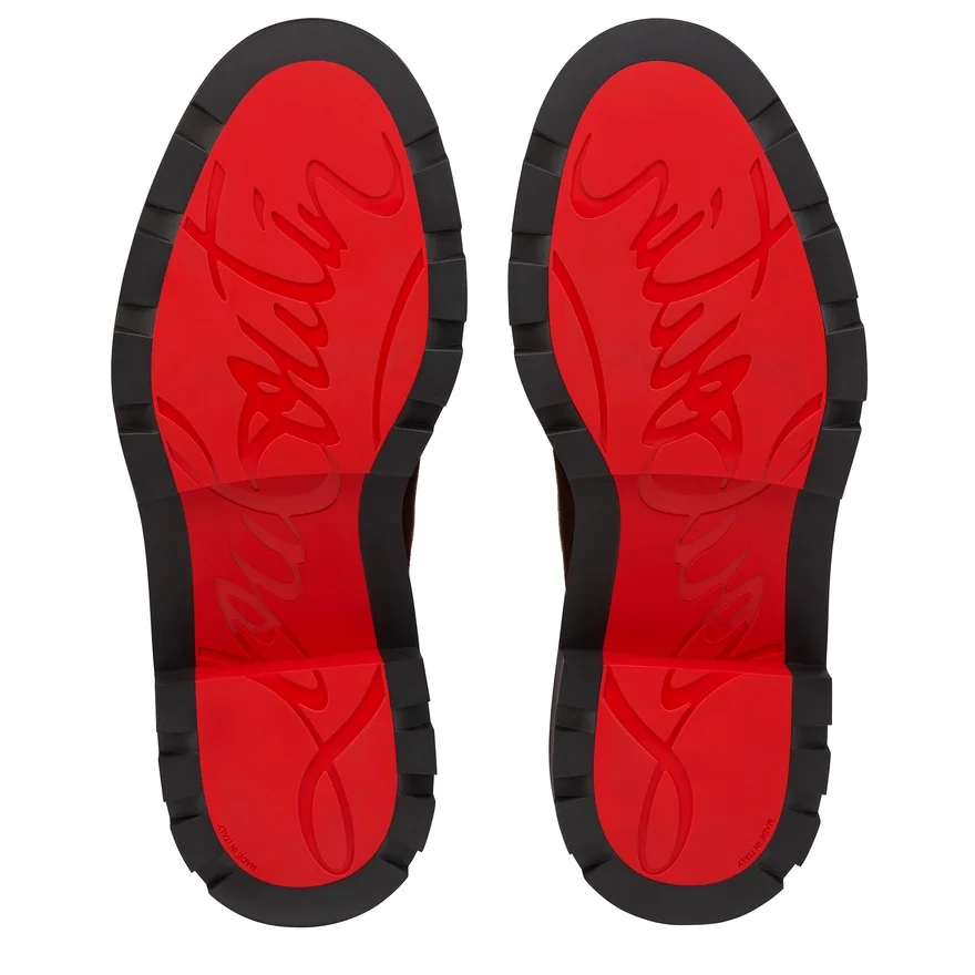 The Oxyford College is an Urban Shoe with a Notched Sole. Distinguished by Its Rounded Toe, It is Made Entirely from Cafa Brown Nubuck Leather with a More Supple Construction. A Testament to the Expertise of Maison Christian Louboutin, It Features a Notched Leather Side Panel and Two Functional Straps with Metallic Buckles.