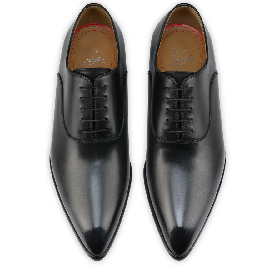 The Pelvis Lace-Up Shoe Has a Pointed Toe and a Rock’n’roll Aesthetic. Set on a Small Square Heel, It is Made Entirely from Black Calf Leather. This Urban, Elegant Model by Maison Christian Louboutin is Enhanced by Topstitching.