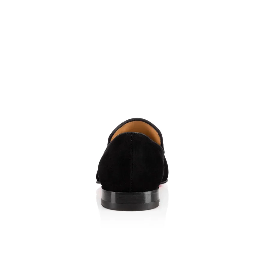 The Dandelion Flat is a Maison Christian Louboutin Iconic Slip-On Loafer with Sleek Elongated Lines and a Timeless Appeal. An Essential in Any Modern Wardrobe, These Loafers Complement All Trouser Styles. The Exquisite Craftsmanship Makes Each Pair a Pleasure to Wear. This Model is Fashioned in an Elegant Black Veau Velours for a Classic Look and Finished with Tone-On-Tone Grosgrain Piping.