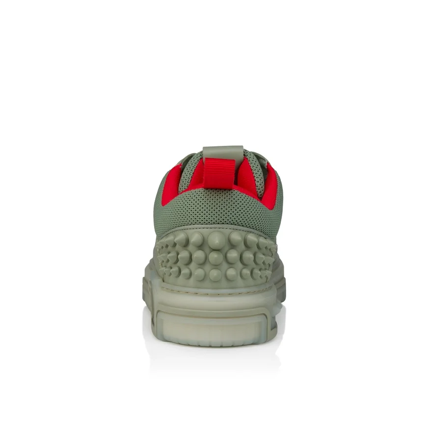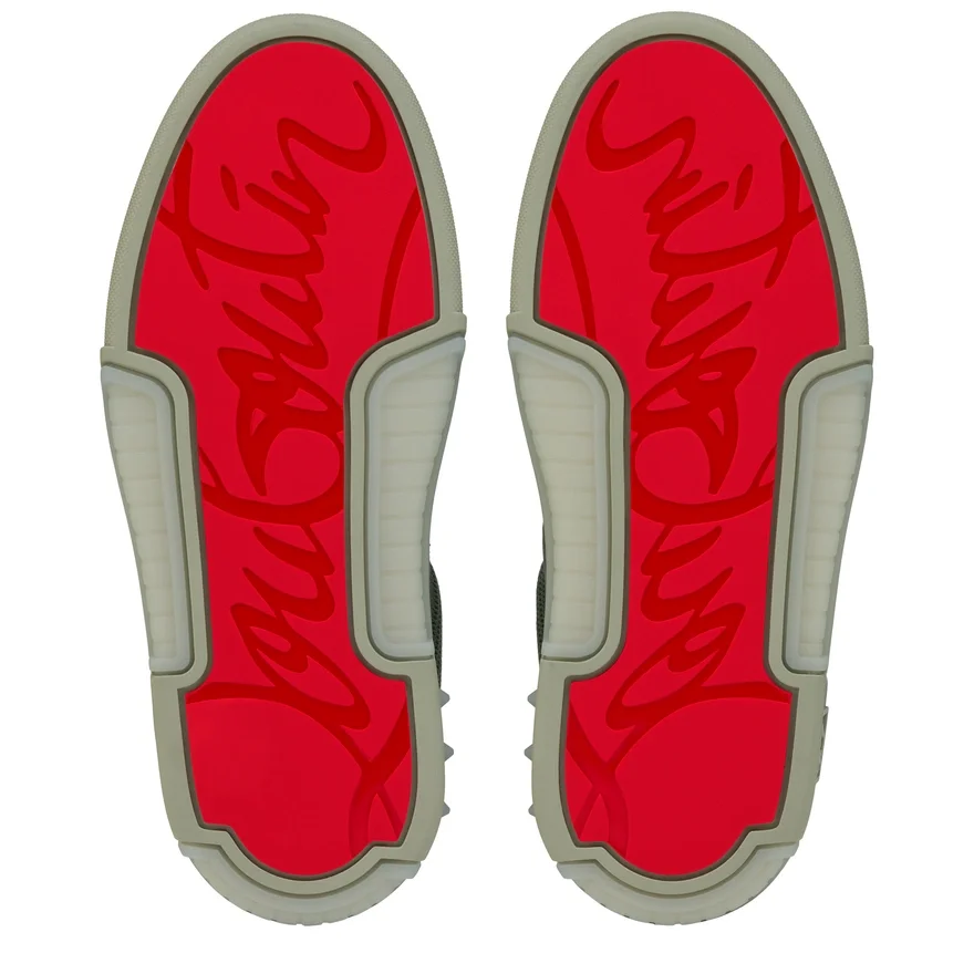 Showcasing an Array of Maison Christian Louboutin Signature Details, the Astroloubi is Inspired by the Basketball Sneakers of the 90S. A Sophisticated Sneaker Crafted Entirely from Haiiro Green Calf Leather and Laminated Calf Leather, and Enhanced by Tonal Trims. A Lightweight, Sporty Design, This Model Also Features a Heel Tab. It is Characterized by Its Spikes and the Cl Varsity Monogram on the Side.