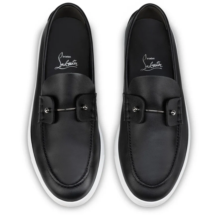 The Chambeliboat Loafer Features Sleek Lines and is Entirely Crafted from Black Calf Leather. Showcasing Maison Christian Louboutin’s ‘Savoir-Faire’, This Model Features a Silver Collar Pin Through the Tongue. Set on a White Rubber Sole, It Has a Summer Appeal.