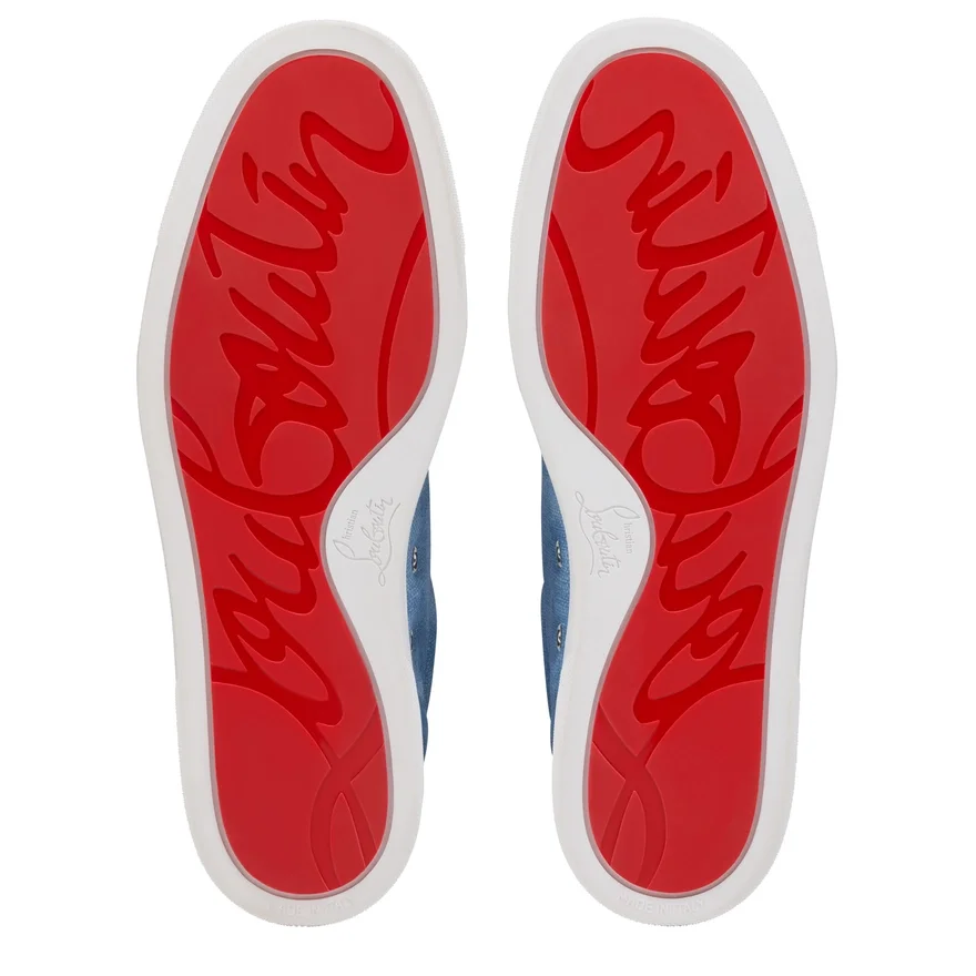 The Retero is an Elegant Low-Top Sneaker Set on a White Rubber Sole. It Features Sporty Lines and is Entirely Crafted from Ceruleo Blue Calf Leather and Crosta Leather with a Canvas-Printed Pattern. This Model Features a Heel Tab and the Emblematic Maison Christian Louboutin Signature on the Side. It Also Has a More Flexible Construction.