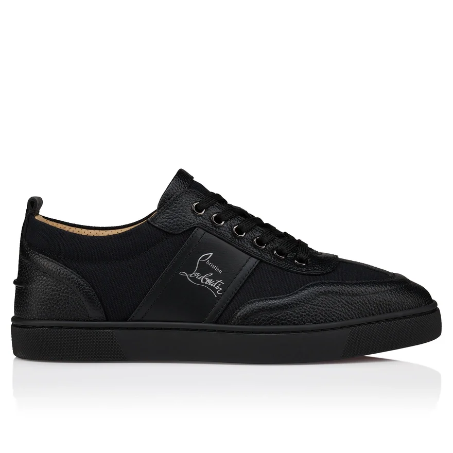 The Retro-Style Retero Sneaker Stands out Thanks to Its Striking Finishing Touches. Set on a Rubber Sole, This Black Version is Made from Grained Calf Leather and Canvas. This Model Features a Supple Contruction. It Has a Heel Tab and a Contrasting Maison Christian Louboutin Signature on a Tone-On-Tone Band on the Side.
