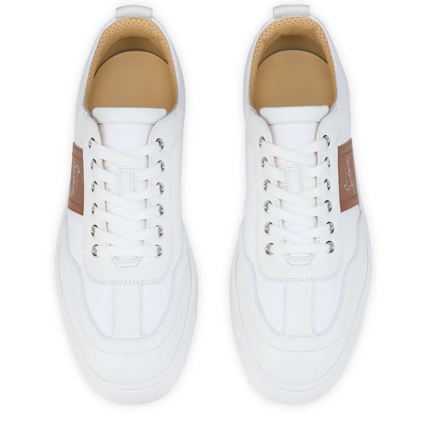 Sleek and Smooth, the Retero Flat Sneaker is Crafted in White Grained Calf Leather and Canvas. It is Adorned with a Sleek Side Band Adorned with the Iconic Maison Christian Louboutin Signature in Contrasting Cuoio Brown Leather for Effortless Style. This Modern Sneaker Combines the 70’S Retro Look with Modern Sophistication and Features a Supple Construction.