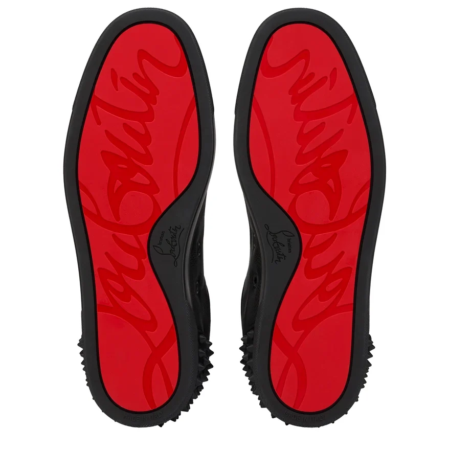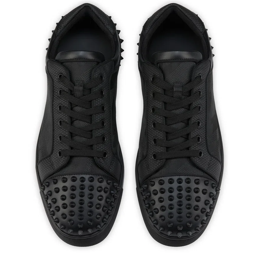 The Seavaste 2 Sneaker Captivates with Its Modern Lines. Crafted from Black Cotton with a Geometric Jacquard Design, It Sits on a Tonal Rubber Sole. It is Distinguished by Its Signature Maison Christian Louboutin Mat Black Spikes.