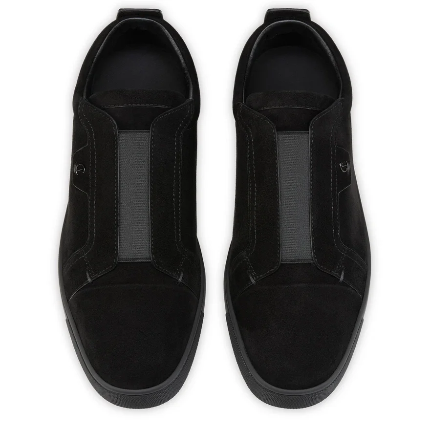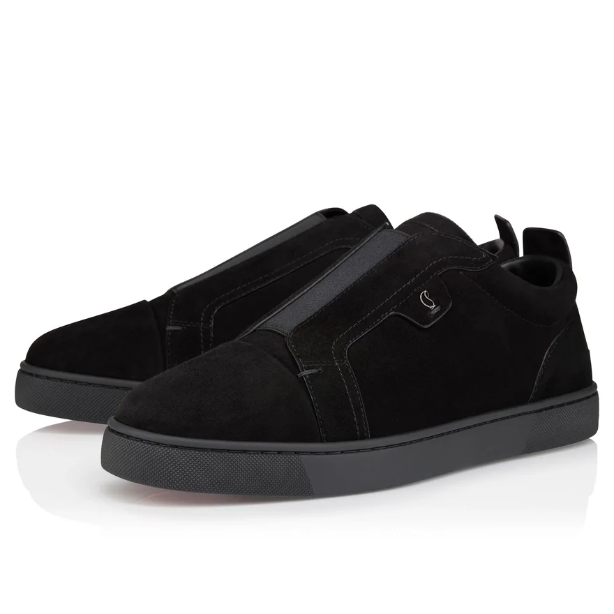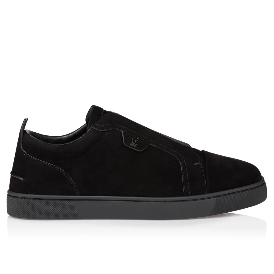 An Iconic Maison Christian Louboutin Sneaker, the St Louis Enchants with Its Modern Style. Crafted in Black Veau Velours, It is Set on a Tonal Rubber Sole. A Slip-On Version of the Iconic Louis, This Sporty Model with a More Supple Construction Features an Elasticated Band on the Upper and an Elegant, Slightly Rounded Toe.
