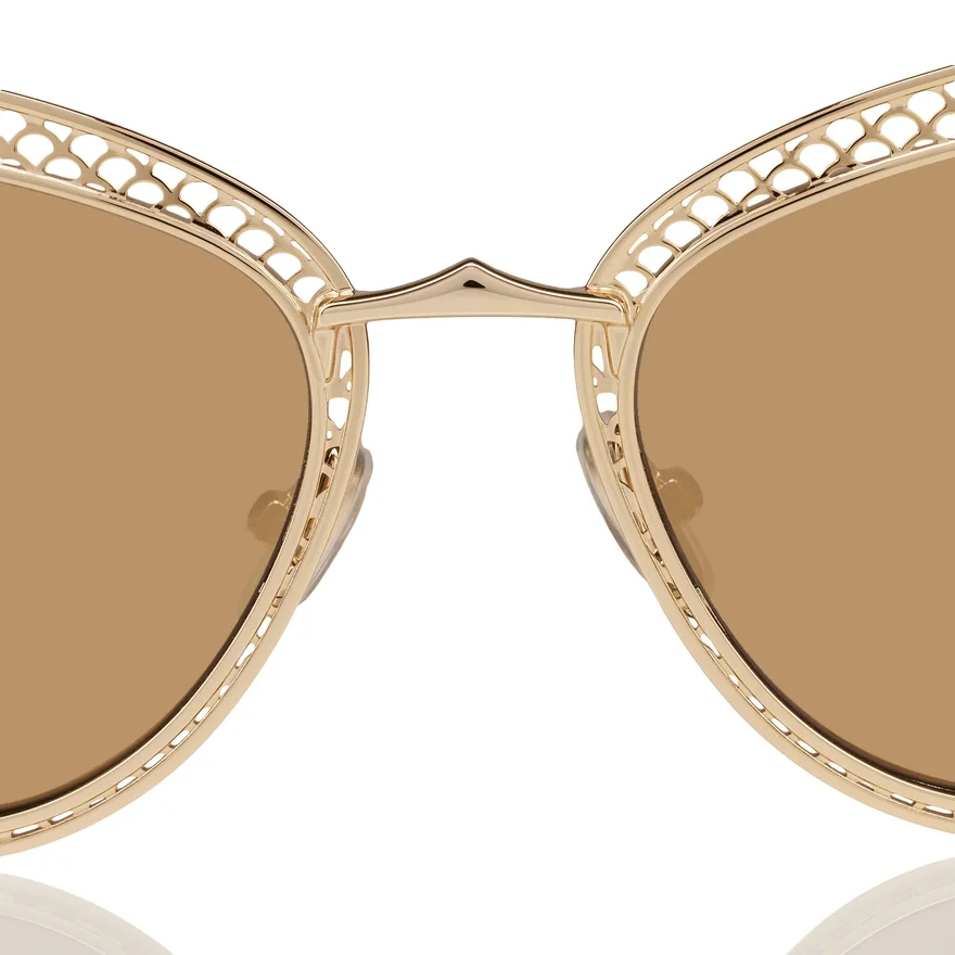 Dolly Lb0002 is One of the Most Iconic Styles of This Sunglasses Collection. It Features a Cat-Eye Shape with Palmette Pattern Crafted Metal on the Frontal Grabbed by Tiny Red Sole Signifier. Art Deco Inspired Metal Temples with Palm Detail on the Hinge. This Model is Made in Pale Gold Color with Smoke Gold Mirrored Lenses. High-Performance Zeiss Lenses Offering Exceptional Quality Comfort and Durability for Christian Louboutin Collection.