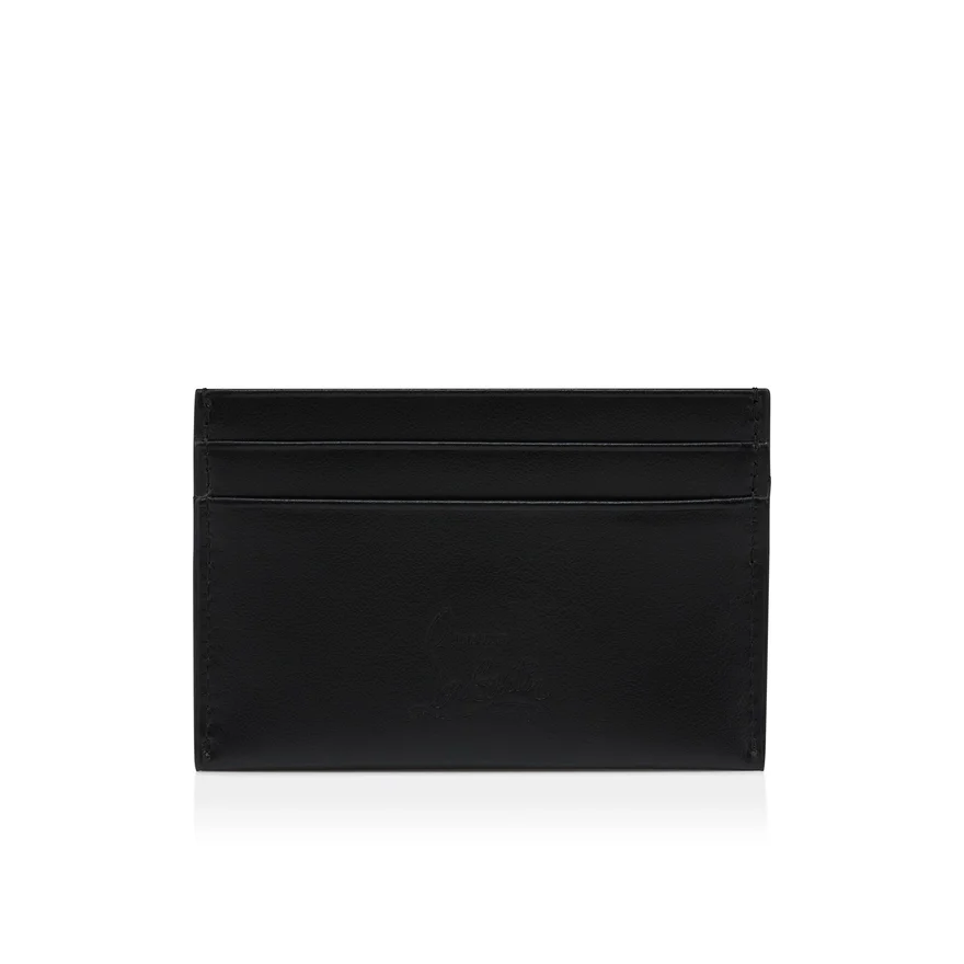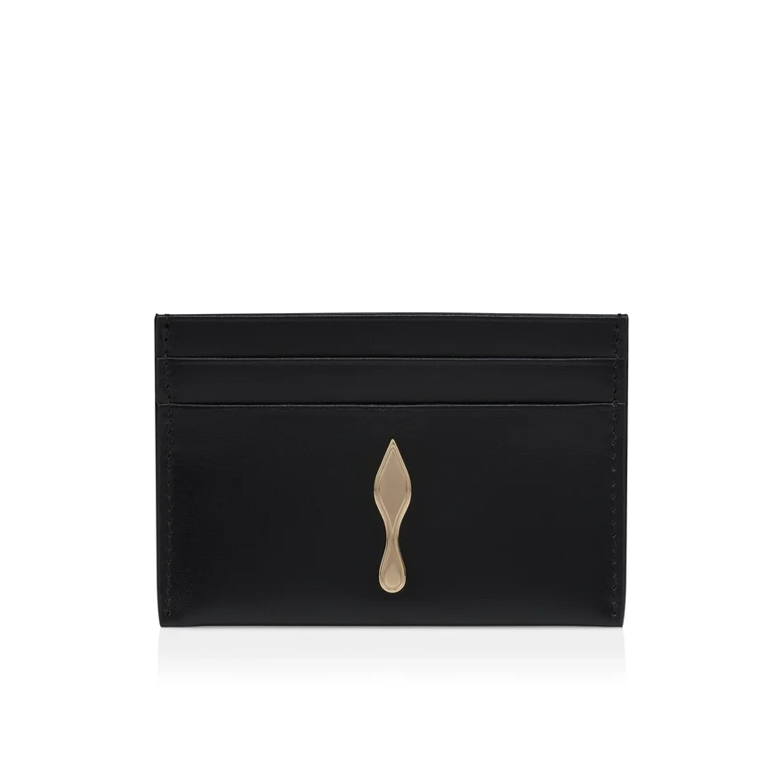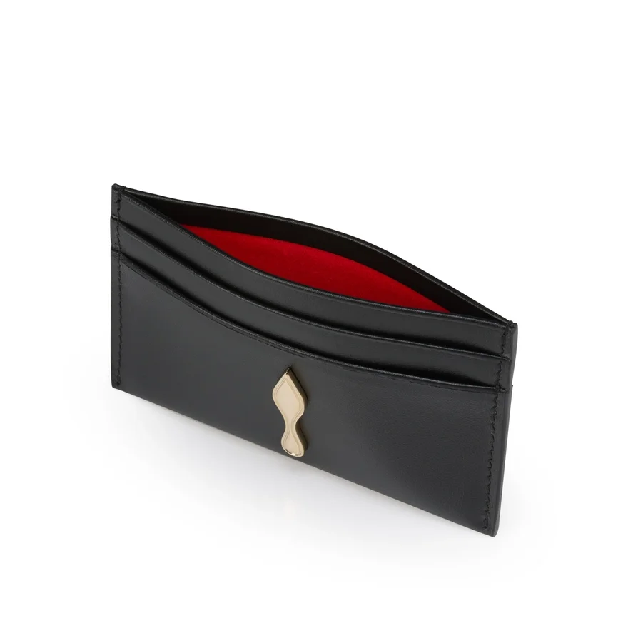 An Iconic Maison Christian Louboutin Model, the Bettina Card Holder Boasts Sophistication. Featuring a Gold Metal Embellishment on the Front, Evoking the Silhouette of the Iconic Sole, This Elegant Model is Entirely Crafted from Black Paris Calf Leather. The Paris Calf Leather Has a Smooth Surface and a Slightly Shiny Finish for a Sleek Look.