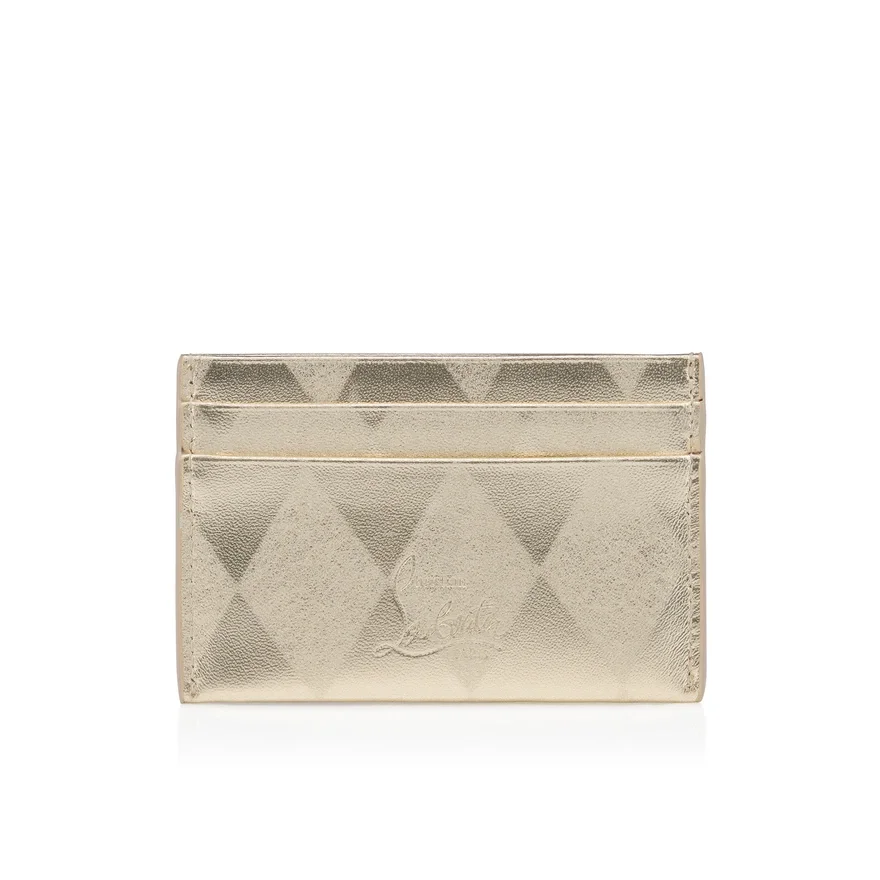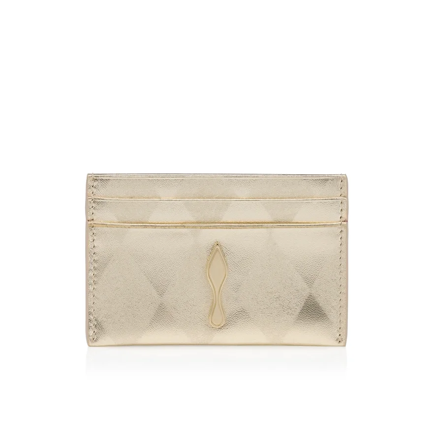 An Iconic Maison Christian Louboutin Model, the Bettina Card Holder Boasts Sophistication. Featuring a Gold Metal Embellishment on the Front, Evoking the Silhouette of the Iconic Sole, This Elegant Model is Entirely Crafted from Laminated Diamond Light Platine Lamb Nappa Leather. The Diamond Pattern is Created Using Differentiated Surface Finishes, Producing a Tone-On-Tone Effect Through a Contrast of Textures and Light Reflection. The Laminated Nappa Leather and Its Delicate Glossy Finish Offer a Controlled Shine and Understated Elegance for a Timeless Result.