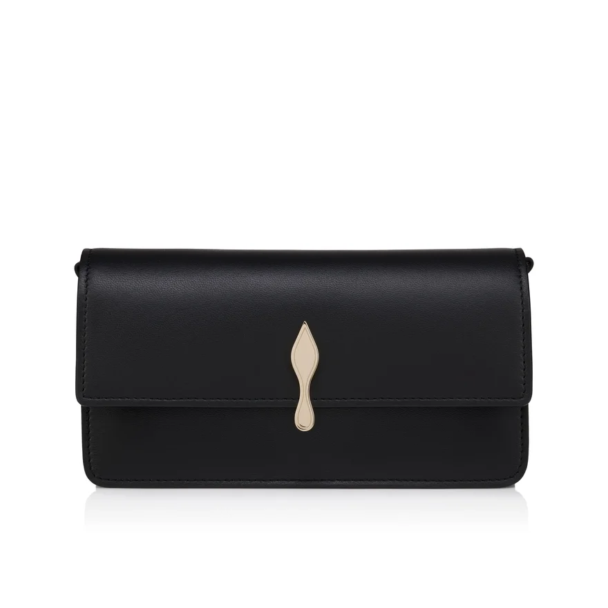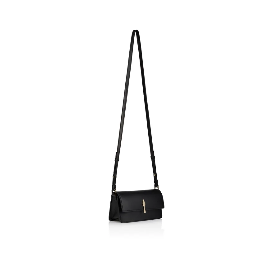 The Maison Christian Louboutin Bettina Crossbody Bag in Size Mini is a Lightweight Model. It is Crafted from Lamb Nappa Leather. This is a Durable Design Embodying an Urban Allure in Black. A Gold Clasp, Evoking the Silhouette of the Iconic Sole, Graces the Front of This Sophisticated Bag That is Carried on an Adjustable and Removable Leather Strap for a Versatile Wear.