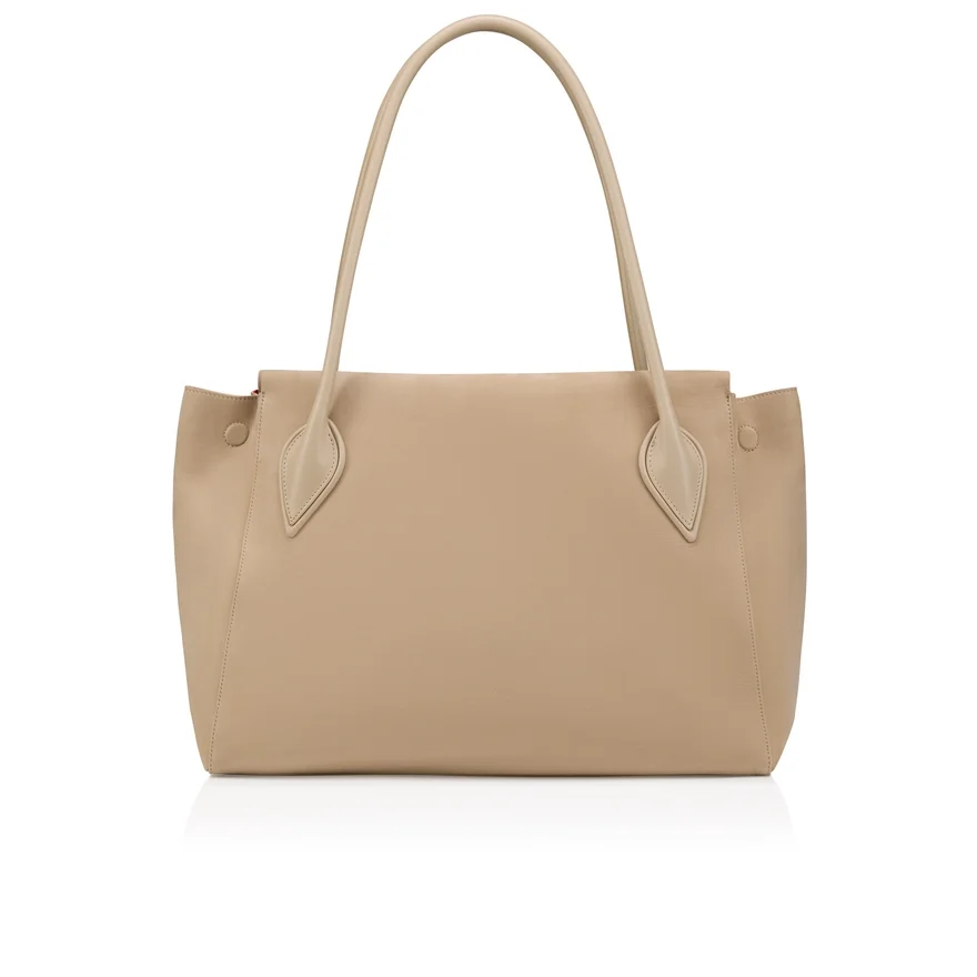 The Venus E/W Tote Bag in Size Large is a Timeless from the Maison Christian Louboutin Collection. Crafted from Smooth, Supple Nubuck Reversed Calf Leather in Saharienne Beige, This Bag Features a Silver Embellishment Evocative of the Iconic Sole. This Spacious and Resistant Model, with Refined Lines, is Designed for Small Escapes and Everyday Use for Both Men and Women. The Chapes of the Bag Recall the Sole of the Iconic Miss Z.