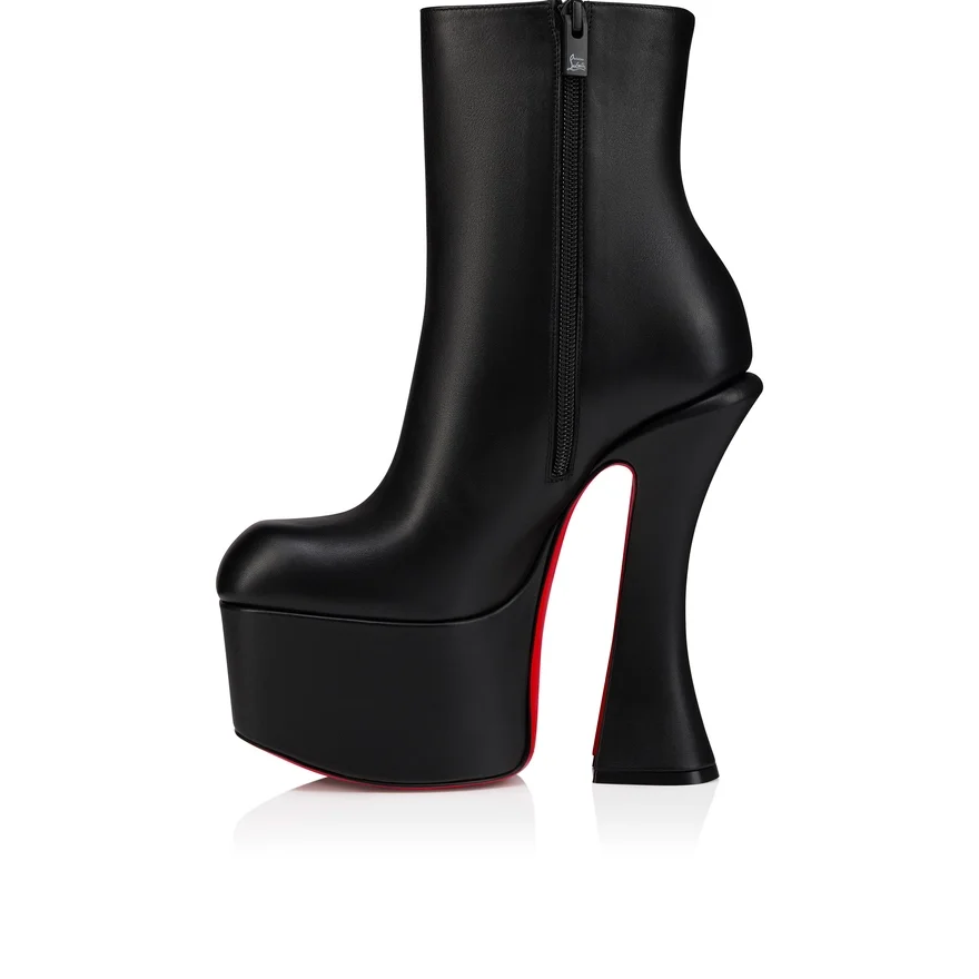 The Aquabootie Platform Ankle Boot Features an Architectural Silhouette. This Iconic Maison Christian Louboutin Design Sits on a 160 Mm Heel and is Crafted in Black Cordia Calf Leather. This Audacious Shoe Has a Squared Toe with Round Edges and a Zip Fastening.
