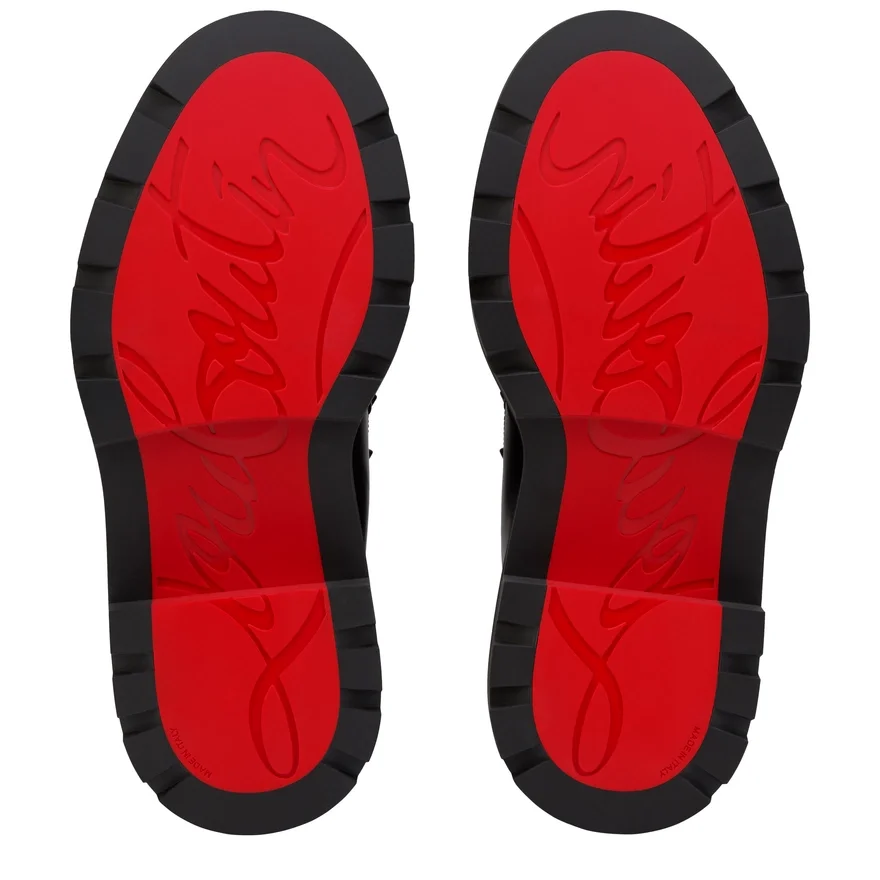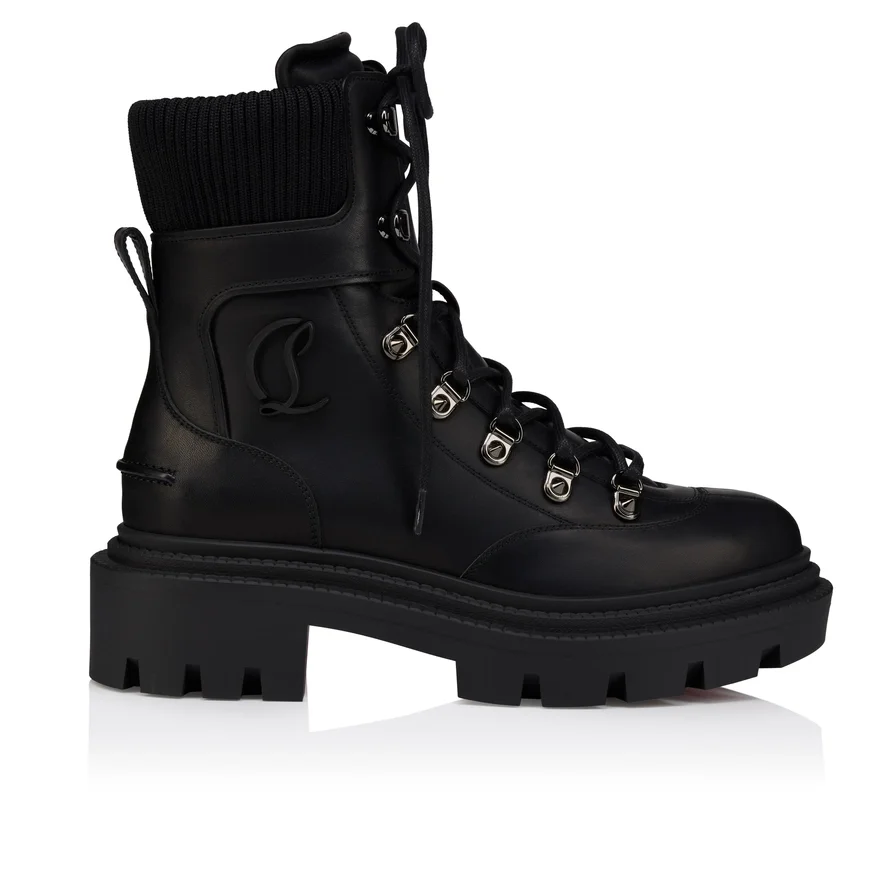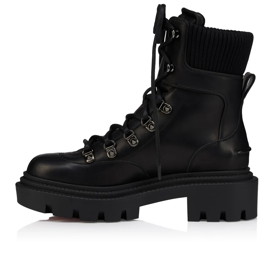 The Armandine College Ankle Boot Takes Its Inspiration from Hiking Boots with a Padded Cuff, Metal Eyelets and a Triple, Robust, Lug Sole. This Lace-Up Maison Christian Louboutin Model is Crafted in Waxed Black Calf Leather and Features a Cl Embossed Logo on the External Side. It is Finished with Elegant Topstitching and an Over-Sized Heel Tab, Making It Easy to Pull On.