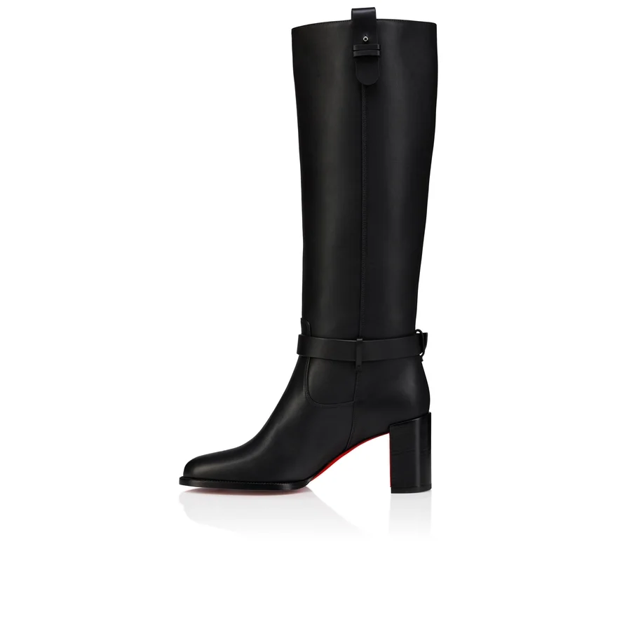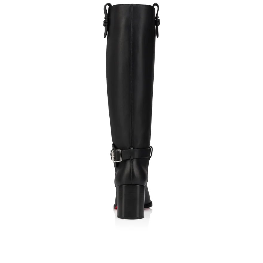 Maison Christian Louboutin’s Dianouchette Botta Tubular Boot Features a Round Toe and is Crafted in Black Calf Leather. This Model is Easy to Put on Thanks to the Two Leather Straps Around the Ankle, Adorned with an Iconic Silver Cl Mooncrest Logo, Pin and Buckle. Set on a 70 Mm Block Heel, This Long Boot Rises Elegantly up the Leg and is Finished at the Top with a Leather Side Tab Featuring a Silver Pin.