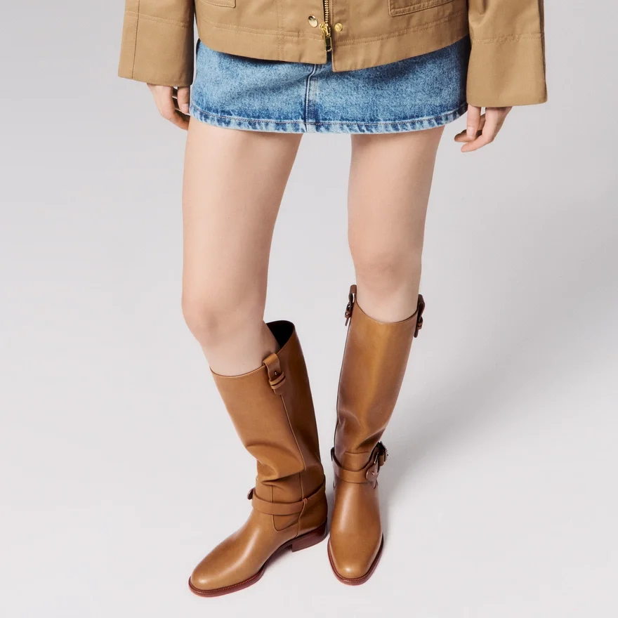 Maison Christian Louboutin’s Dianouchette Botta Tubular Boot Features a Round Toe and is Crafted in Terra Brown Waxed Calf Leather. This Model is Easy to Put on Thanks to the Two Leather Straps Around the Ankle, Adorned with an Iconic Gold Cl Mooncrest Logo, Pin and Buckle. This Long Boot Rises Elegantly up the Leg and is Finished at the Top with a Leather Side Tab Featuring a Silver Pin.