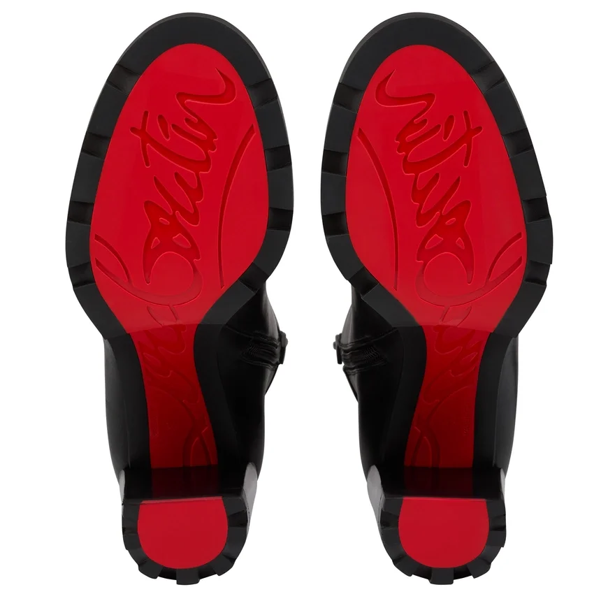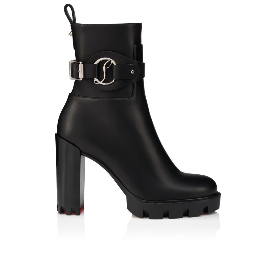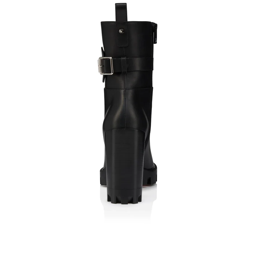 The Dianouchette Lug Ankle Boot Has a Modern Style. Crafted from Black Waxed Calf Leather, This Model Has a Lug Sole, Sits on a 100 Mm Block Heel and Features a Strap at the Back. It Features a Side Silver Buckle Enhanced with the Cl Monogram, a Signature Detail of Maison Christian Louboutin.