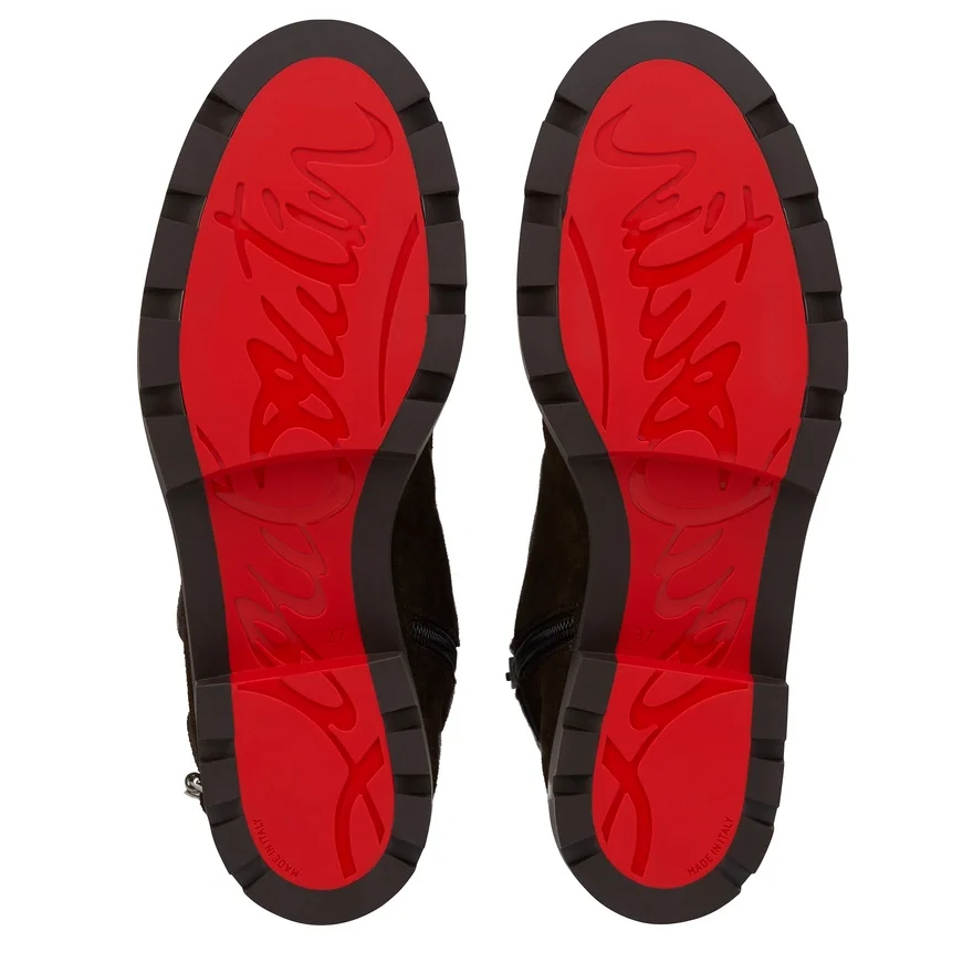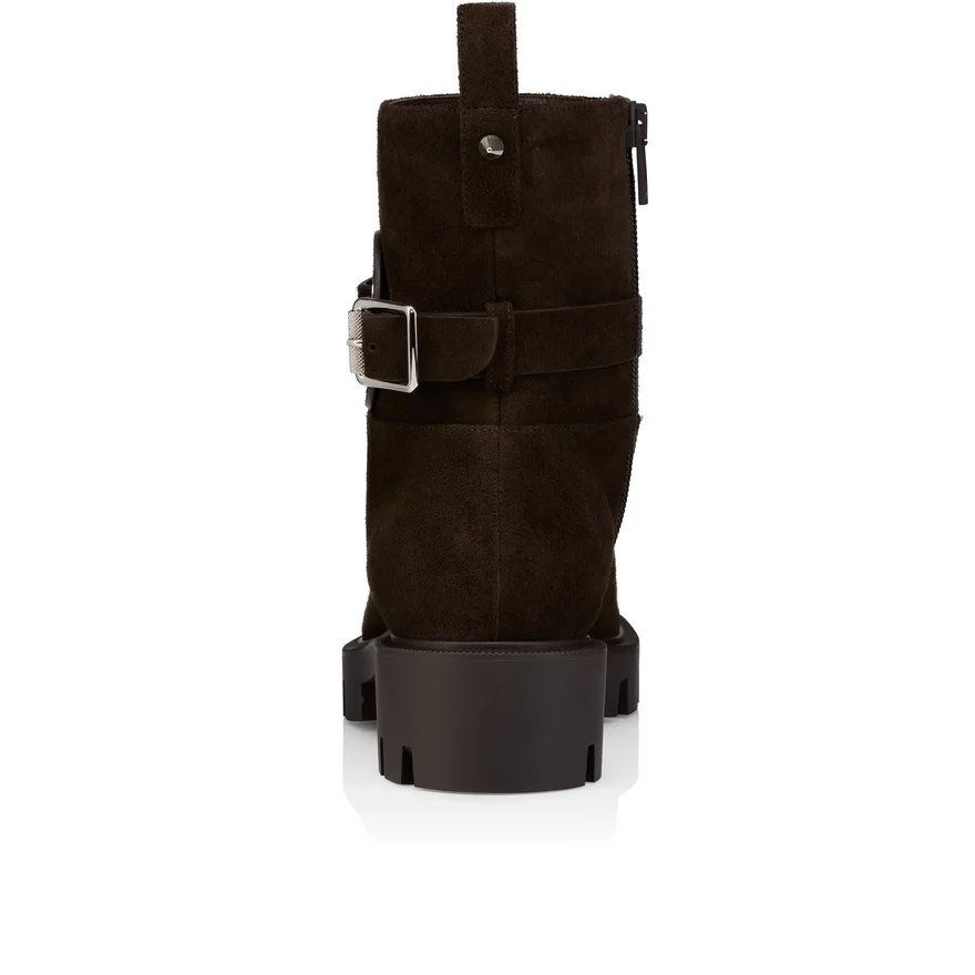 The Dianouchette Lug Ankle Boot Has a Modern Style. Crafted from Cafa Brown Reversed Calf Leather, This Model Has a Lug Sole and a Strap at the Back. It Features a Side Silver Buckle Enhanced with the Cl Monogram, a Signature Detail of Maison Christian Louboutin.