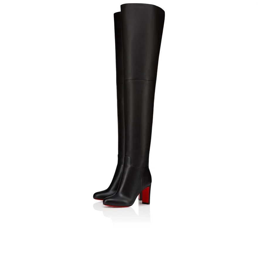 The Sophisticated Loo Thigh Boot is Made Entirely from Cafa Brown Calf Leather. This Urban Maison Christian Louboutin Boot is Set on an 85 Mm Straight Heel. It Features an Almond-Shaped Toe and Has a Sleek, Tubular Silhouette That Wraps the Leg up to Thigh.