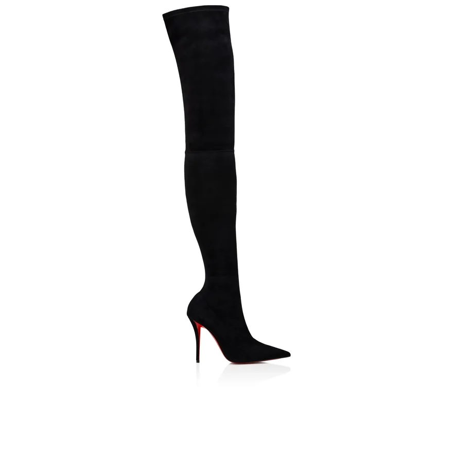 With Its Tapered Silhouette, the Miss Z Botta Alta is Defined by Its Sophisticated Style. Set on a 100 Mm Stiletto Heel That Reveals the Loubi Red of the Iconic Sole, and Featuring a Padded Insole, This Maison Christian Louboutin Shoe is Crafted from Black Veau Velours. This Boot Embraces the Leg and Slims the Silhouette. Thigh-High and Featuring a Pointed Toe, This Model Features an ‘Everlasting Red’ Sole Thanks to an Innovative Coating Technique to Ensure Resistance and Lasting Vibrancy for Our Signature Louboutin Red.
