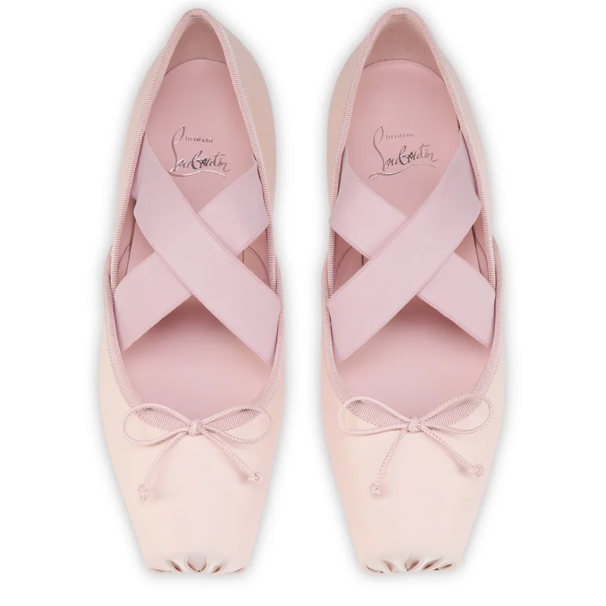 Inspired by Ballet Shoes, the Cassiasticina Ballerina is Defined by Its Elegance. Crafted from Poupee Pink Crepe Satin, This Maison Christian Louboutin Shoe Features Two Elasticated Straps That Cross over the Top of the Foot and a Small Tonal Bow. This Model Features an ‘Everlasting Red’ Sole Thanks to an Innovative Coating Technique to Ensure Resistance and Lasting Vibrancy for Our Signature Louboutin Red.