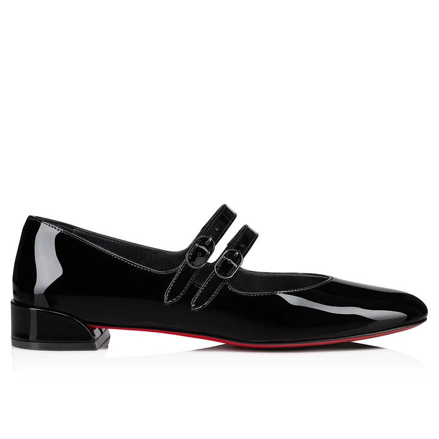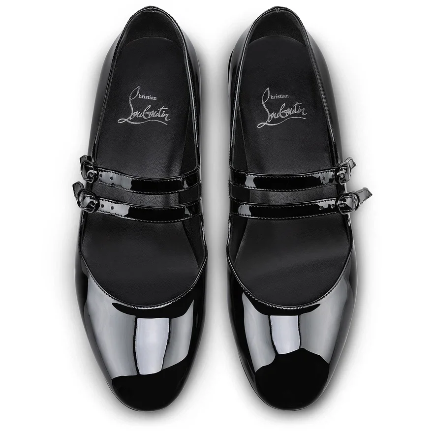 The Sweet Jane Ballerina Has a Sophisticated Appeal. Taking Its Cue from the Mary Jane, This Maison Christian Louboutin Shoe is Crafted Black Patent Calf Leather. It Features Two Elasticated Straps with Tonal Buckles for an Elegant Finish.