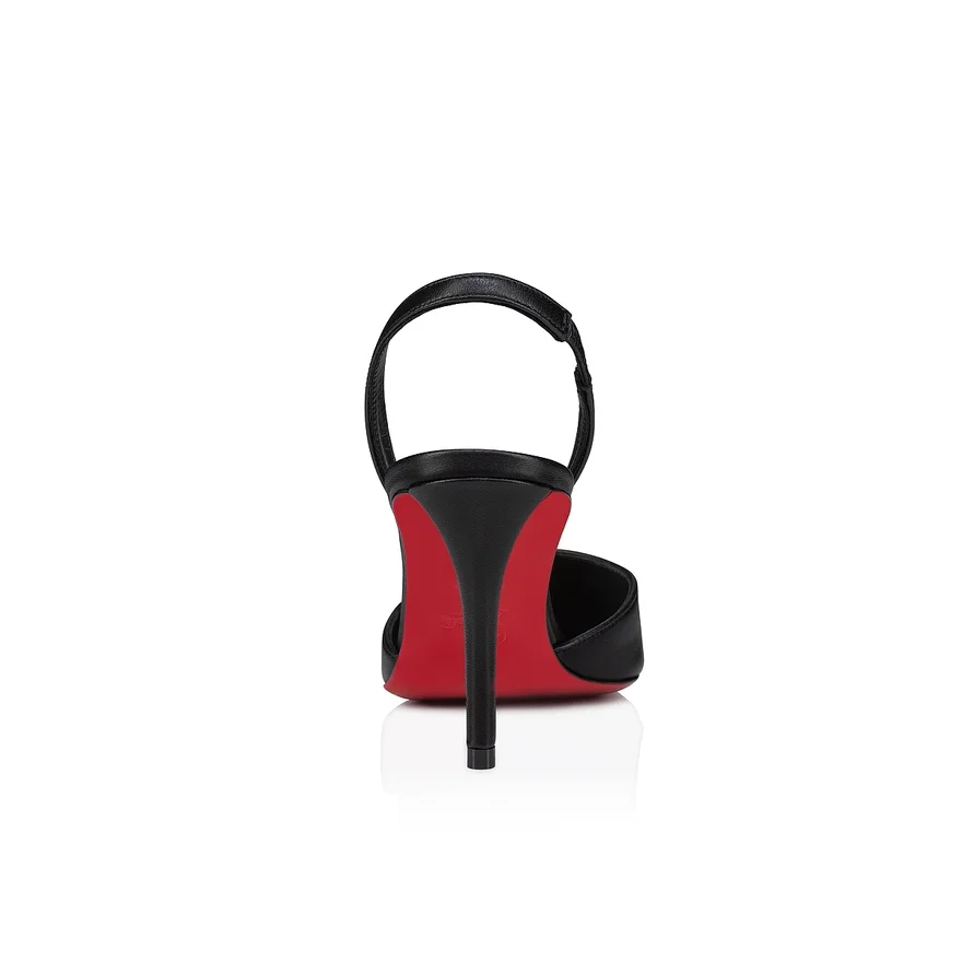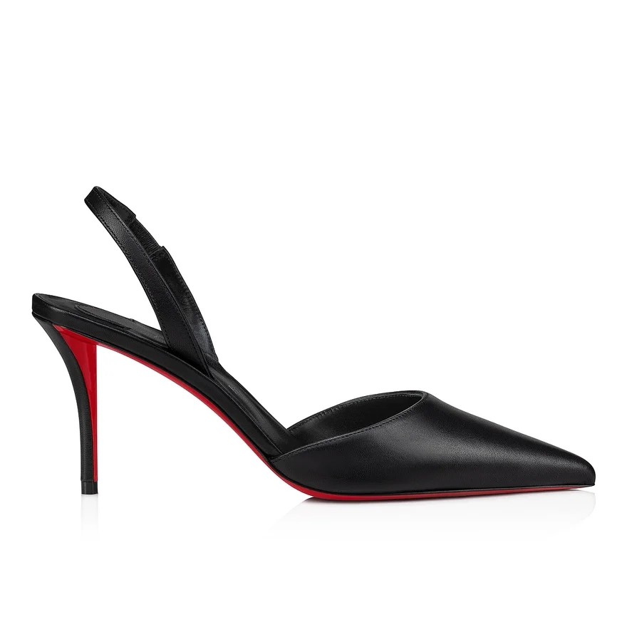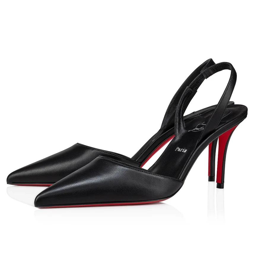 The Apostropha Sling Pump Has a Pointed Toe. Set on an 80 Mm Angled Heel, It is Entirely Crafted in Black Leather. Its Daring Low-Cut Vamp Elegantly Reveals the Foot. This Maison Christian Louboutin Model is Sophisticated and Modern with Delicate Finishing Details.