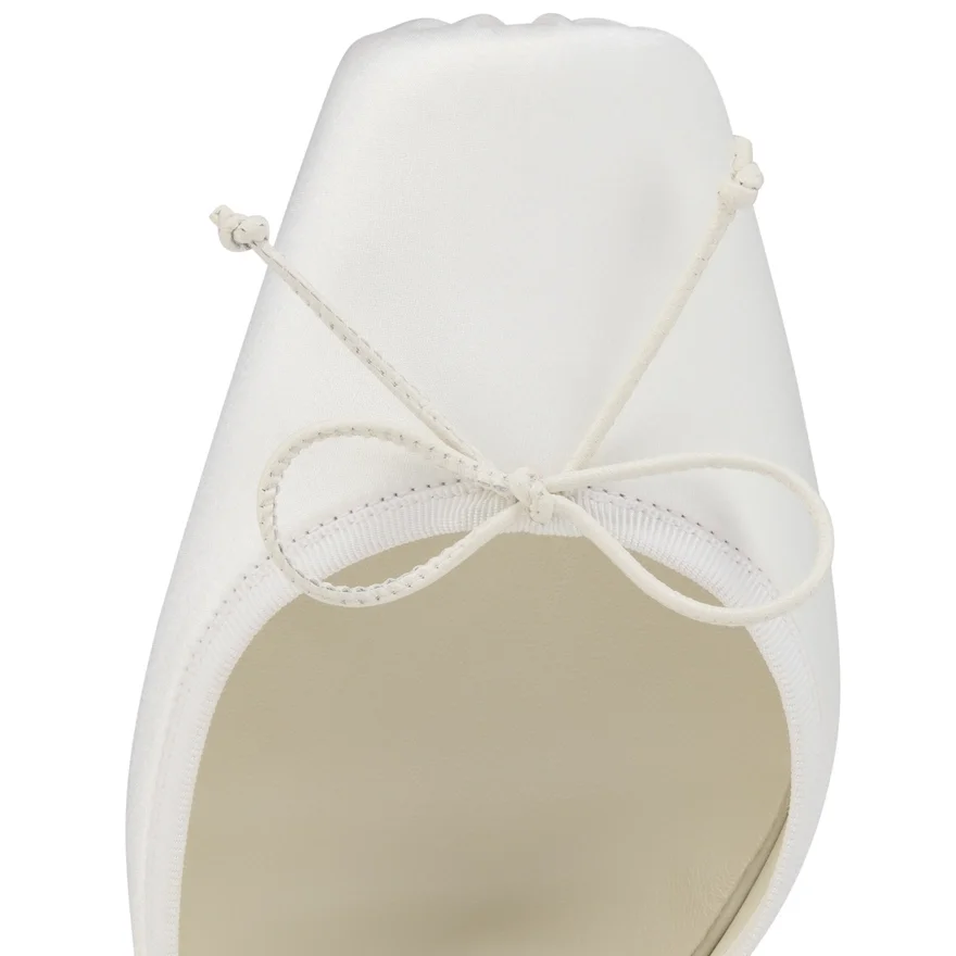 The Strikingly Elegant Cassia Lace up Pump is Inspired by Ballet Shoes. This Maison Christian Louboutin Model is Part of the Bridal Collection; As Such, It is Crafted from Ivory White Crepe Satin with Tonal White Lining and Set on a 100 Mm Stiletto Heel. A Ribbon Ankle Tie and a Small Tone-On-Tone Bow Enhance Its Delicate Lines, and It Has a Gold Heart-Shaped Stamp on the Insole, Along with the Christian Louboutin Signature.