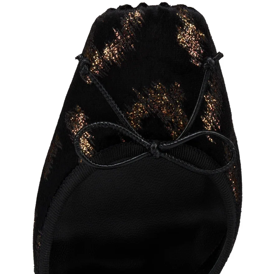 The Strikingly Elegant Cassia Lace up Pump is Inspired by Ballet Shoes. This Maison Christian Louboutin Shoe is Crafted from Black Velvet with a Leo by Night Animal Print, Hand-Decorated with Gold and Copper Sequinned Threads, and Set on a 100 Mm Stiletto Heel. A Ribbon Ankle Tie and a Small Tone-On-Tone Bow Enhance Its Delicate Lines.
