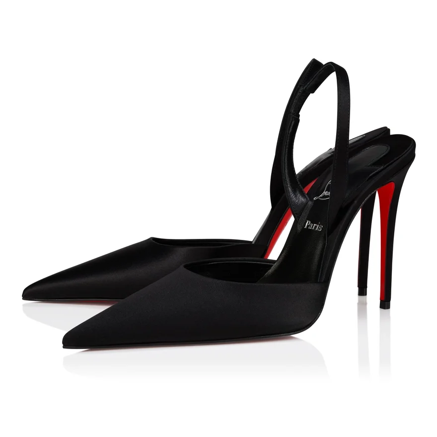 The Kate Max O Sling is a Sophisticated Slingback Pump. Featuring a Pointed Toe and a Slim Ankle Strap, It Has Striking Slender Lines. Set on a 100 Mm Stiletto Heel, This Maison Christian Louboutin Slingback is Crafted from Black Crepe Satin. This Pump is Part of the Hollywood Capsule.