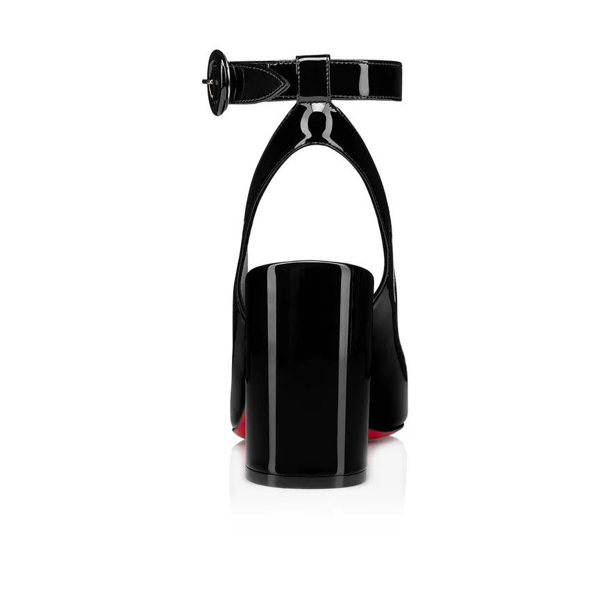 A Summery Model with Sleek Lines, the Miss Sab Sling Sandal Features an 85 Mm Asymmetrical Heel. The Straps Are Attached Behind the Ankles and Are Adorned with Delicate Rounded Clasps. Entirely Crafted in Black Patent Calf Leather with Discreet Topstitching, It Showcases Maison Christian Louboutin’s Creativity and Expertise.