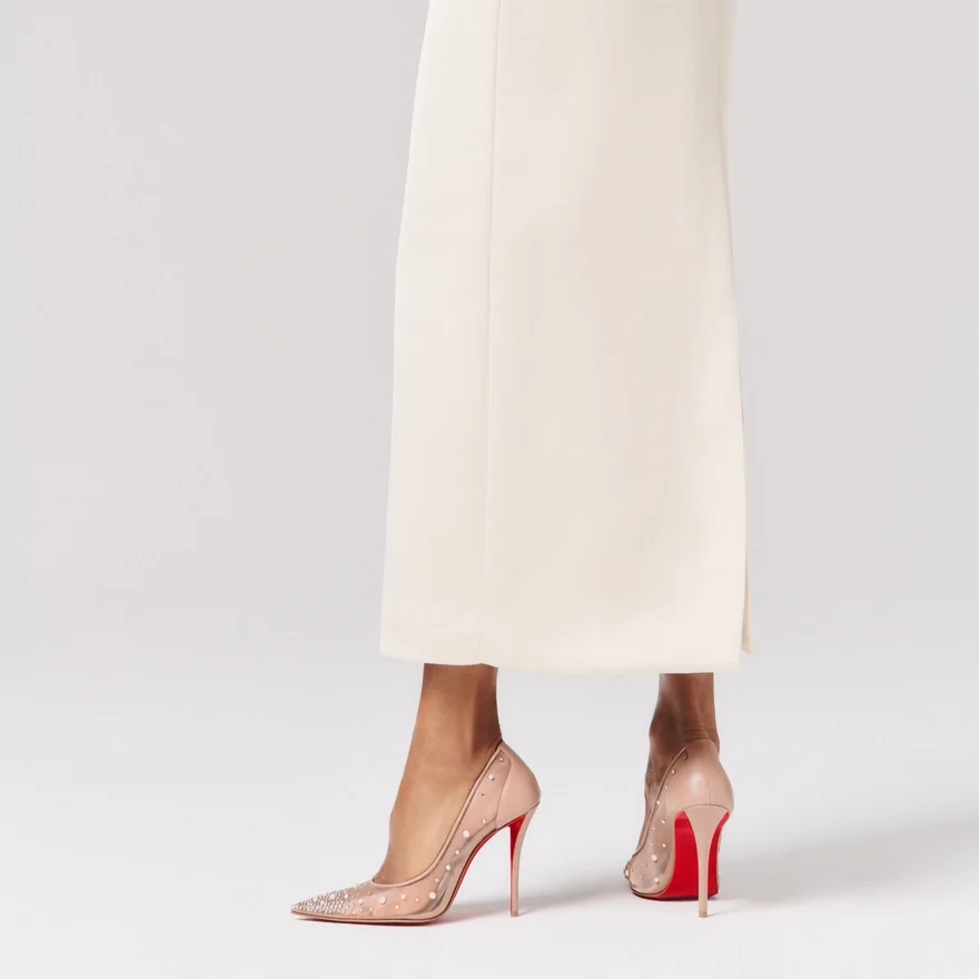 The Tapered Silhouette of the Miss Z Degrastrass Perla Pump Offers Sophistication. Set on a 100 Mm Stiletto Heel That Reveals the Iconic Loubi Red Sole, and Featuring a Padded Insole, This Model from Maison Christian Louboutin is Crafted from Blush Beige Mesh Outlined with Tonal Lamb Nappa Leather. The Mesh is Adorned with Hand-Placed Signature Strass and Pearls, Creating a Gradient Pattern Rising from the Toe to the Heel. Revealing the Foot with Its Elegant Vamp, This Model Features an ‘Everlasting Red’ Sole Thanks to an Innovative Coating Technique to Ensure Resistance and Lasting Vibrancy for Our Signature Louboutin Red.