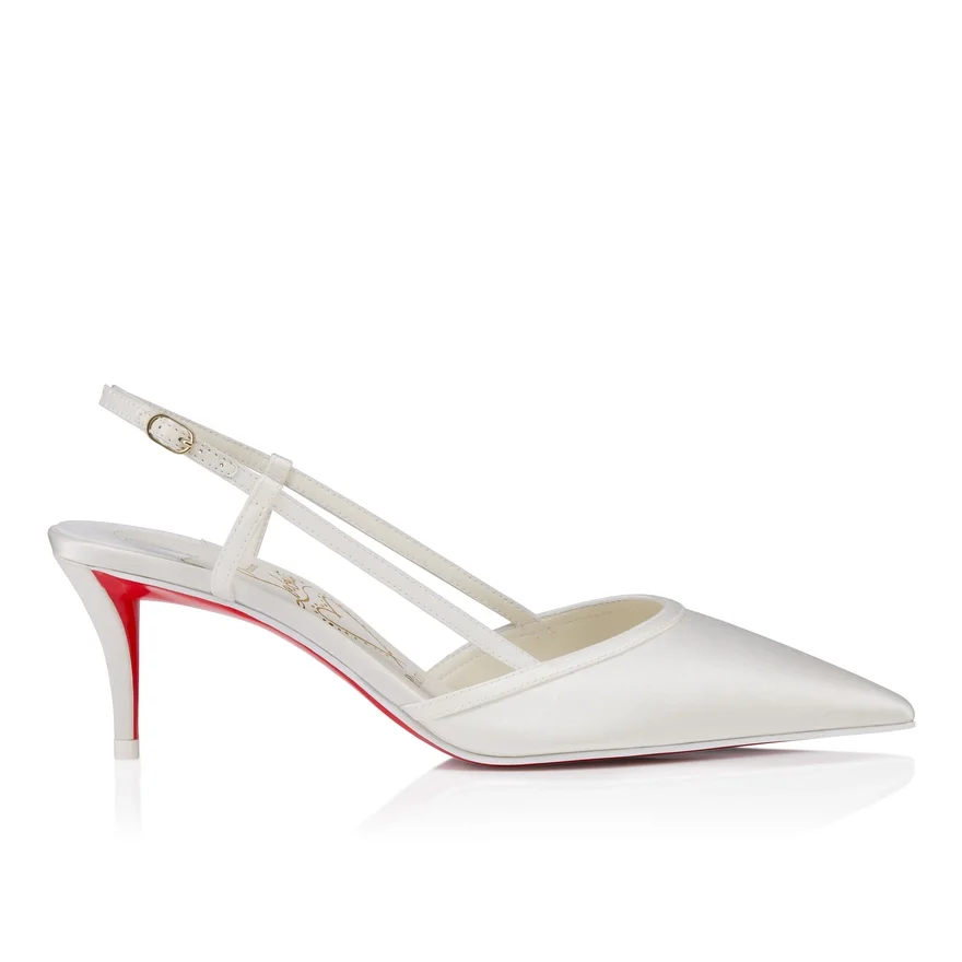 The Miss Z Sling is a Modern Slingback Pump with a Slightly Elongated Pointed Toe Andslender Strap. Its Cleverly Designed 60 Mm Heel is Shaped to Create Theillusion of Being Higher, Revealing the Loubi Red Sole from Every Angle. Thismaison Christian Louboutin Model is Crafted in All-Over Ivory Crepe Satin Witha Tonal Snow White Lining. It is Finished with Meticulous Stitching Using Alurex Thread. This Slingback Pump Features a New ‘Everlasting Red’ Sole Thanksto an Innovative Coating Technique That Ensures Resistance and Lasting Vibrancyfor Our Signature Louboutin Red. This Wedding Collection Model Presents Thechristian Louboutin Logo and Heart Stamp on the Insole.