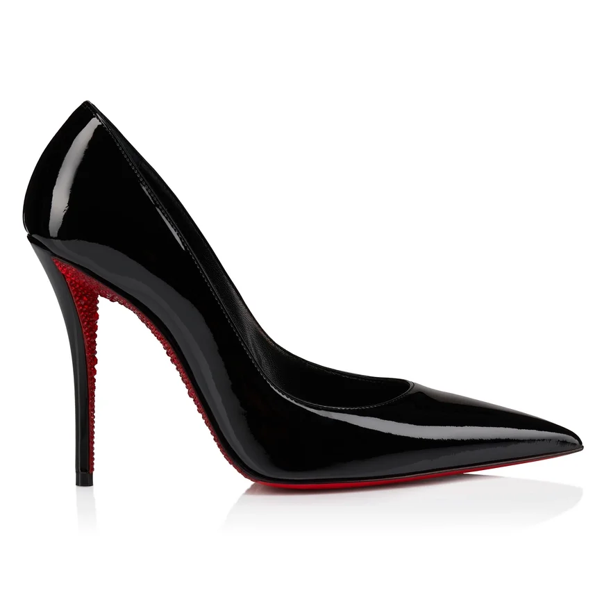 The Tapered Silhouette of the Miss Z Suola Strass Pump Offers Sophistication. Set on a 100 Mm Stiletto Heel That Reveals the Iconic Red Loubi Sole Adorned with Strass, This Maison Christian Louboutin Model is Crafted from Black Patent Calf Leather. Revealing the Foot with Its Elegant Vamp, This Shoe is Part of the Special Valentine’s Day Collection.