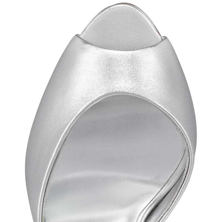 Inspired by Dolly Parton, the Cute Retro Me Dolly Mule Has Been Reworked with a New Heel Height. This Stunning Model from the Dolly Collection Has a Wide Almond-Shaped Peep-Toe Construction and Maison Christian Louboutin’s Signature 100 Mm ‘Fetish’ Heel. The Upper is Crafted in Stunning Silver Laminated Leather, Which is Further Enhanced by a Tonal Silver Lining.