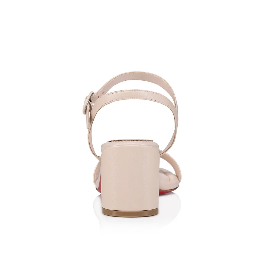 The Elegant Miss Jane Sandal Features a Rounded Open-Toe and Maison Christian Louboutin’s Daring Low-Cut Vamp, Revealing a Glimpse of the Toe. It Has a 55 Mm, Easy-To-Wear Block Heel and Two Slender Straps That Fasten to the Side of the Foot with Two Circular Buttons. This Model is Crafted in Soft Leche Beige Leather for a Timeless Look That is Both Subtle and Sophisticated.